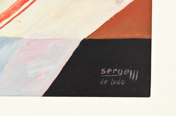 Colorful Post-Cubist oil painting stil life with guitar By Serge Magnin, born in France 1934.  Framed.  Size of the frame:             H. 67 cm  x L. 81 cm. x W. 2 cm. H. 26.4 inch x L. 31.9 inch. x W.0.8 inch.  Size of the painting: H. 45 cm x L. 59 cm. H. 17.7 inch x L. 23.3 inch.