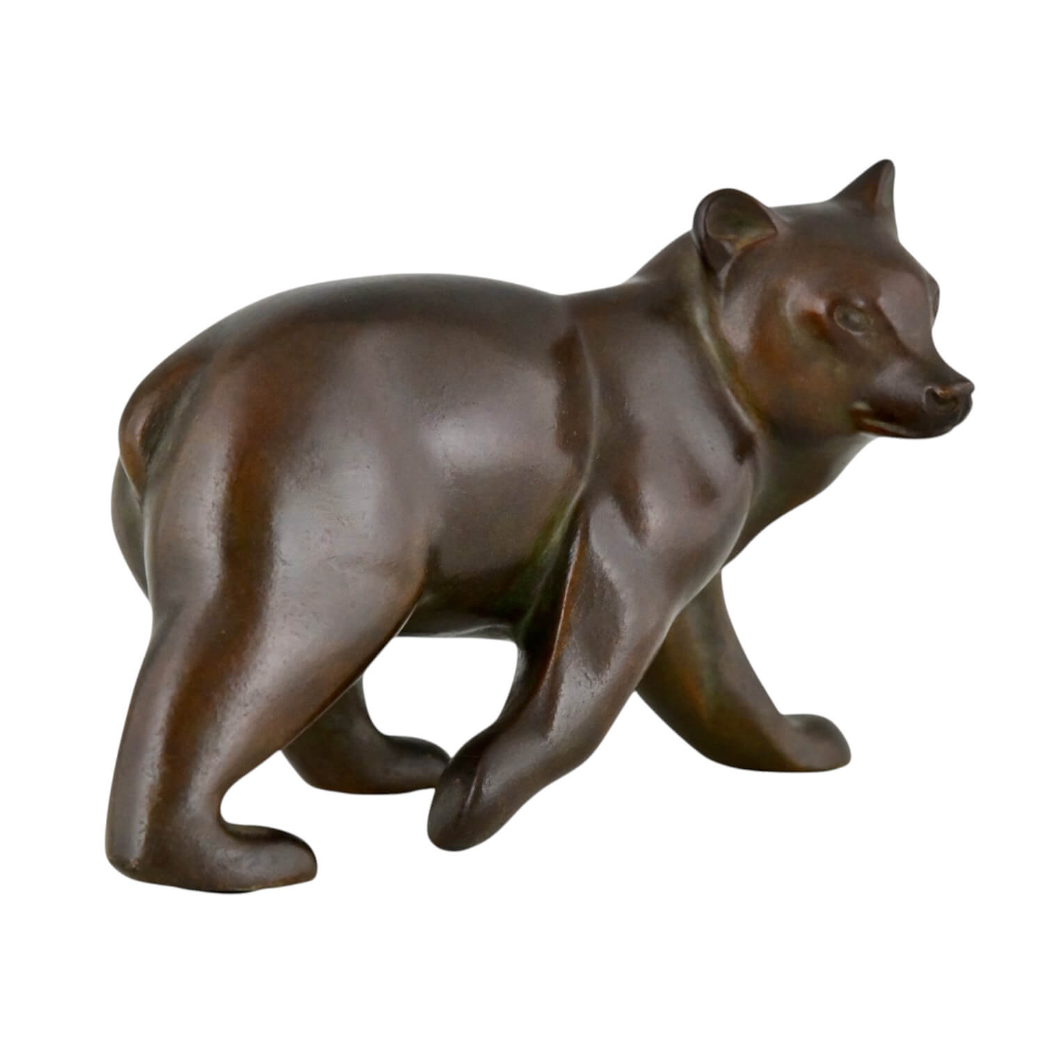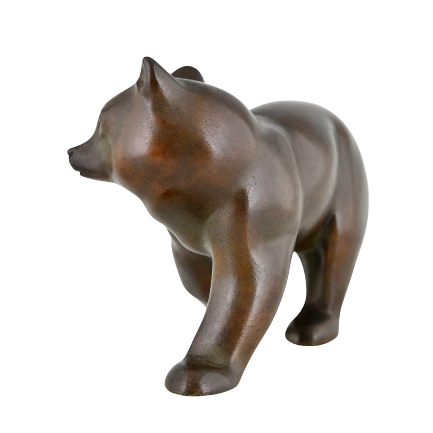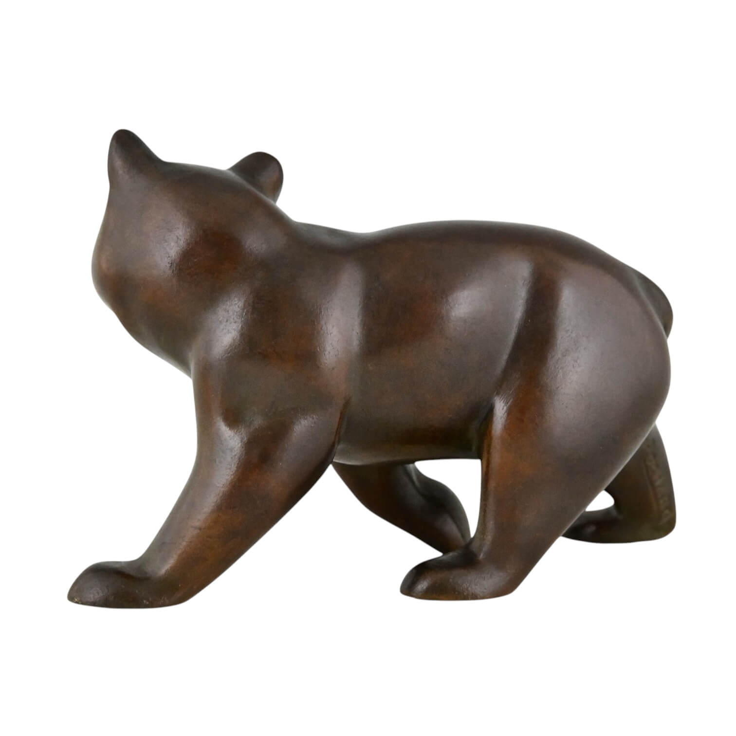 Measuring 13.5 cm high, 20.5 cm long, and 10 cm wide (5.3 x 8 x 3.9 in), this bronze bear sculpture is in very good condition. A timeless piece of French Art Deco design, it is perfect for collectors of 20th-century animalier sculpture.
