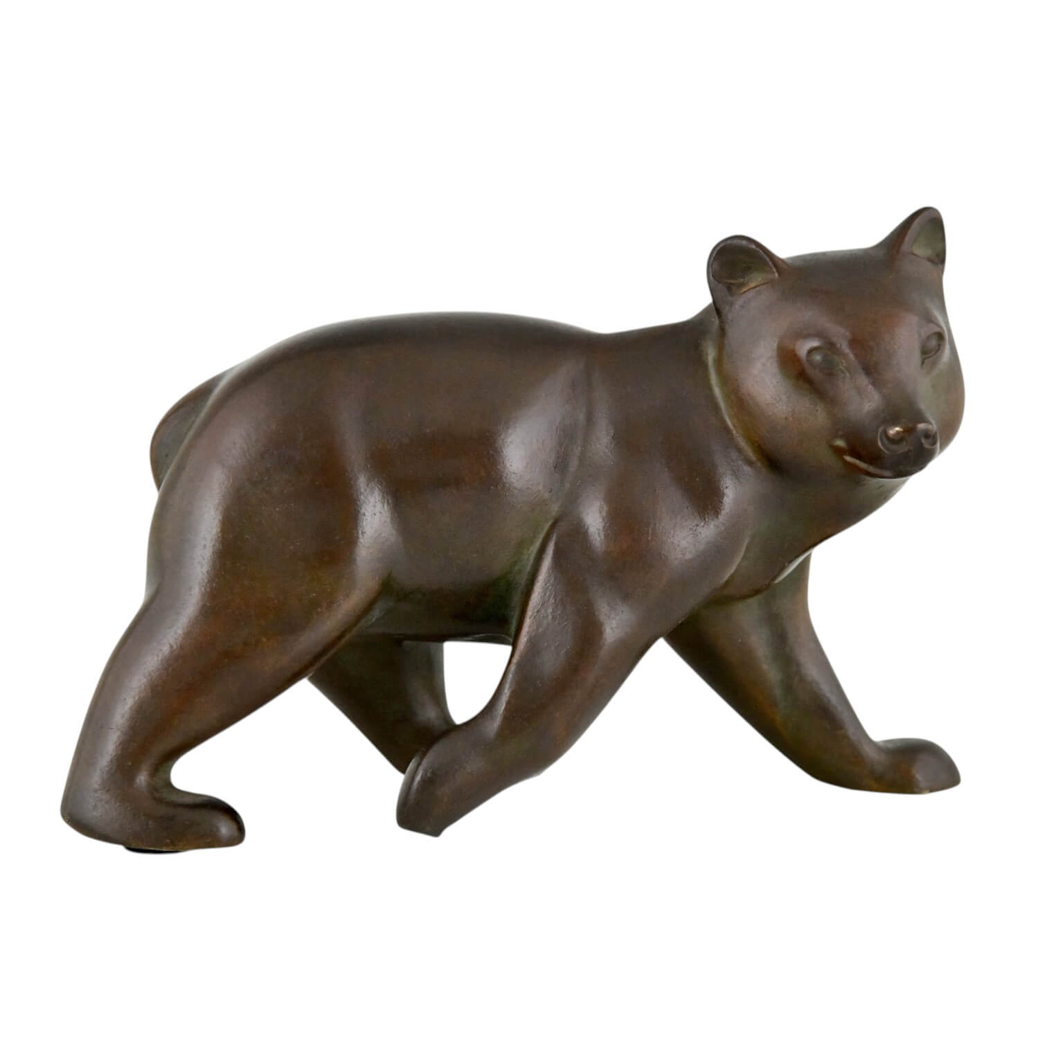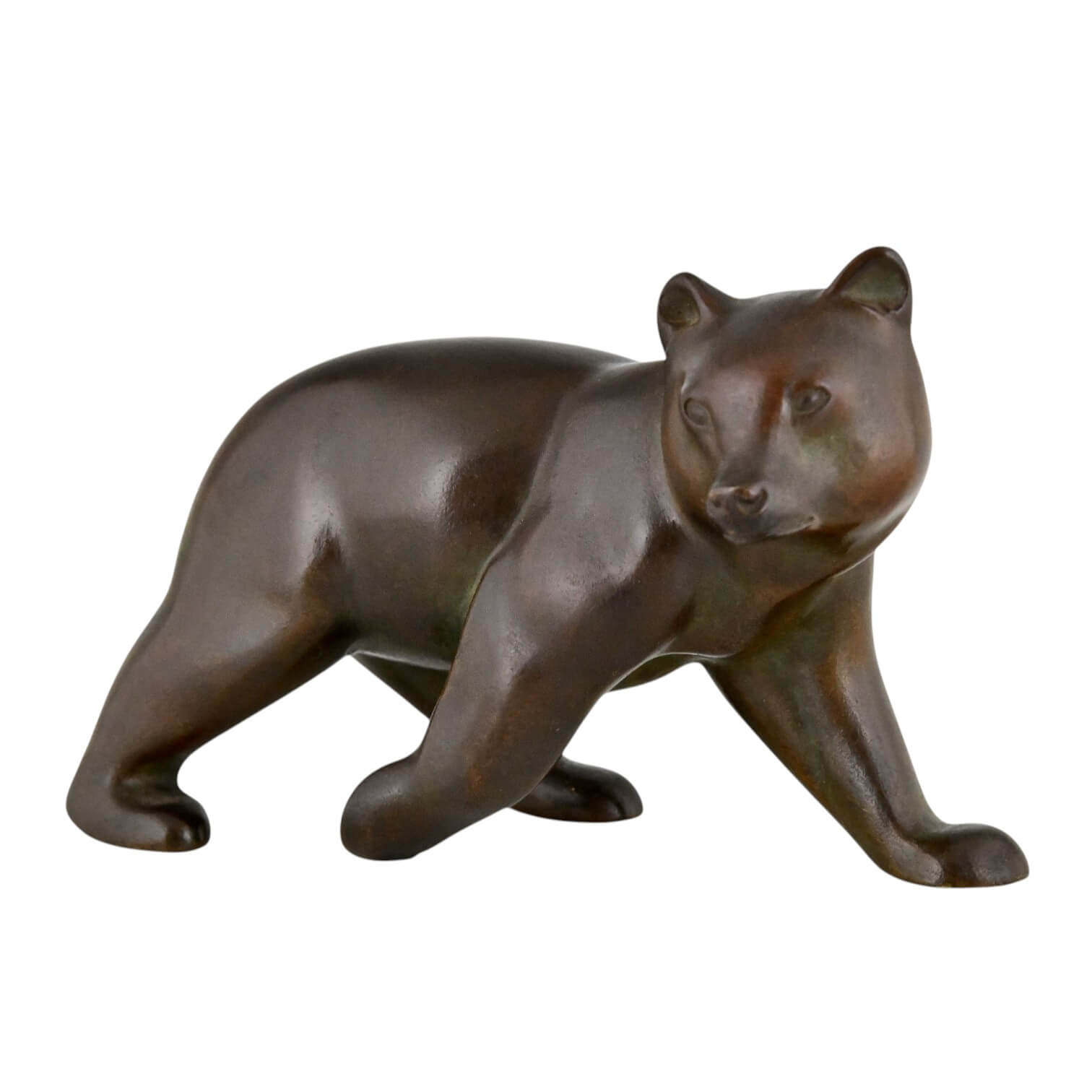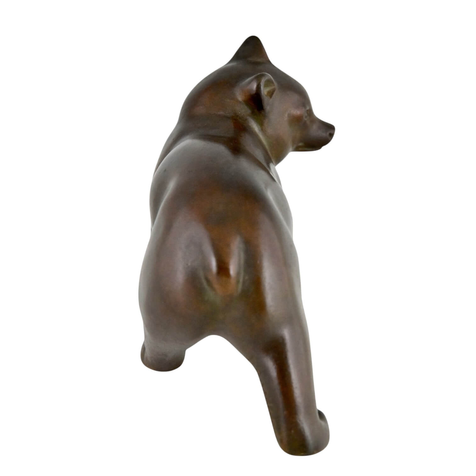 Measuring 13.5 cm high, 20.5 cm long, and 10 cm wide (5.3 x 8 x 3.9 in), this bronze bear sculpture is in very good condition. A timeless piece of French Art Deco design, it is perfect for collectors of 20th-century animalier sculpture.