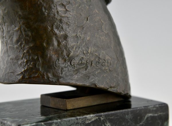 Art Deco bronze bust of a deer signed by Georges Raoul Garreau.