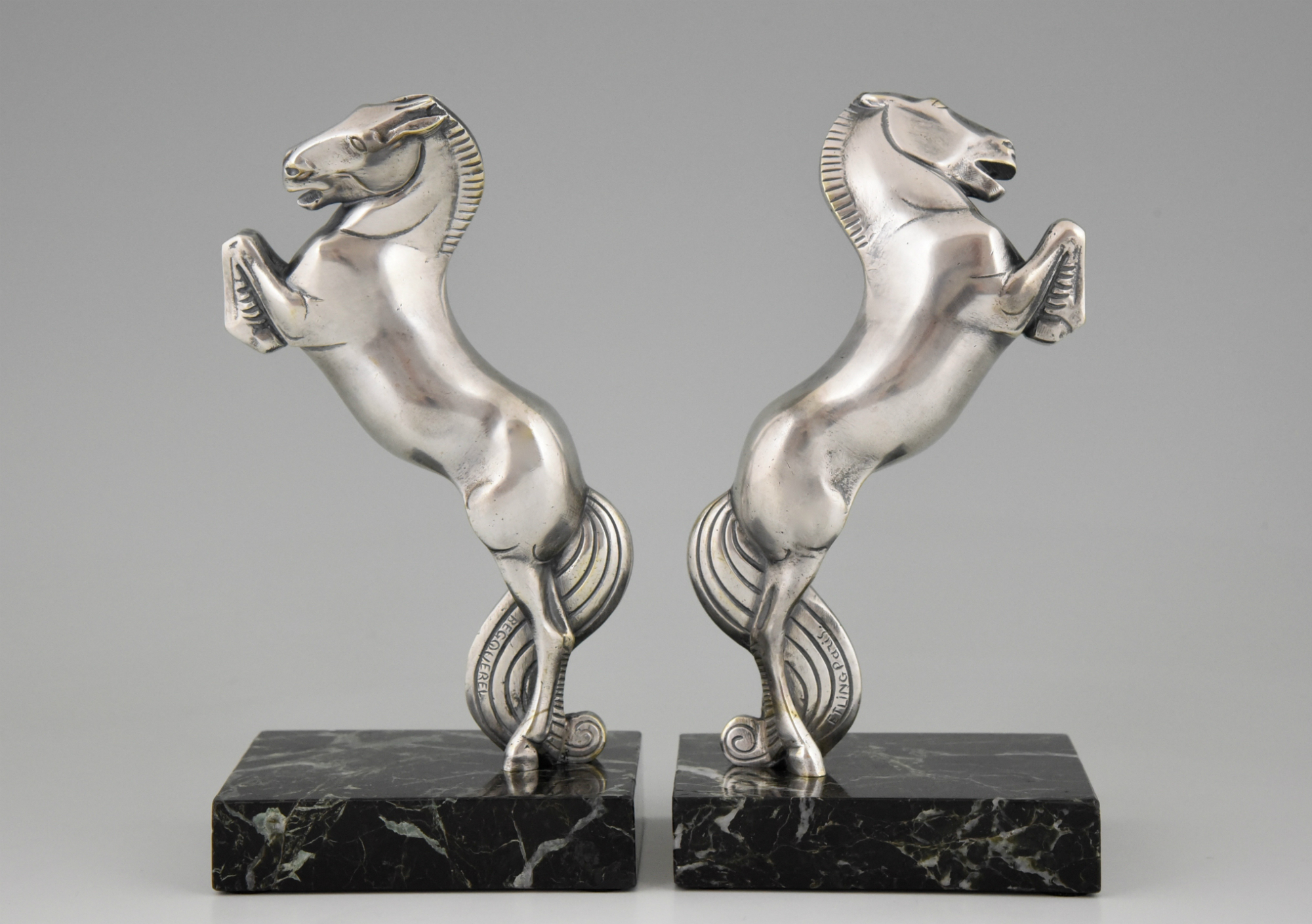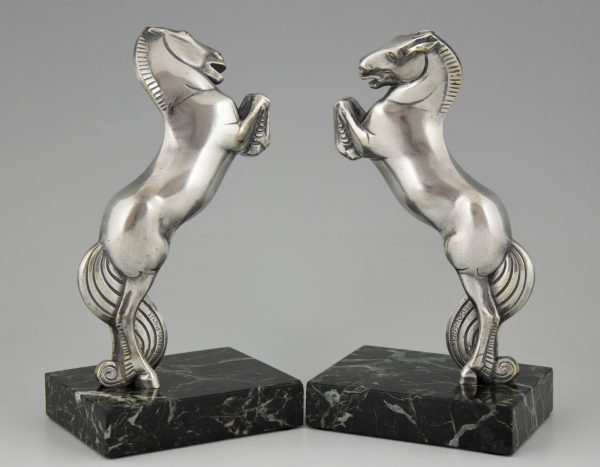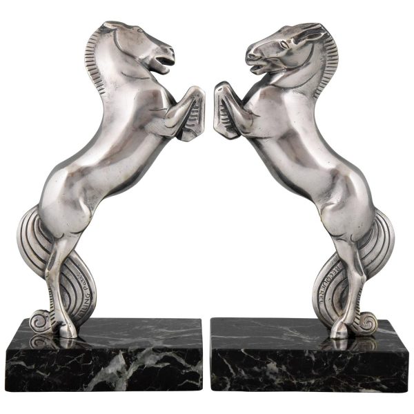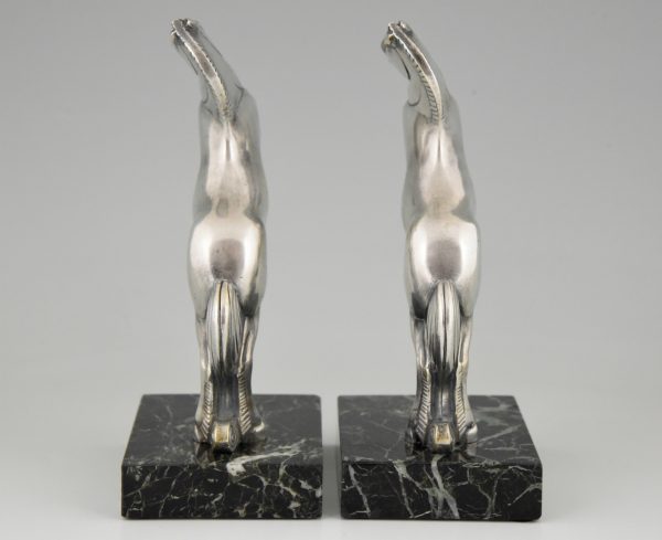 A very nice pair of Art Deco silvered bronze horse bookends by the French artist André Vincent Becquerel,