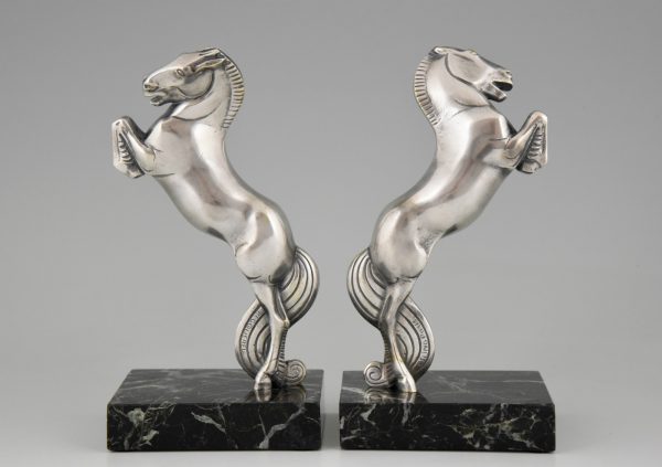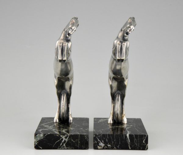 A very nice pair of Art Deco silvered bronze horse bookends by the French artist André Vincent Becquerel,