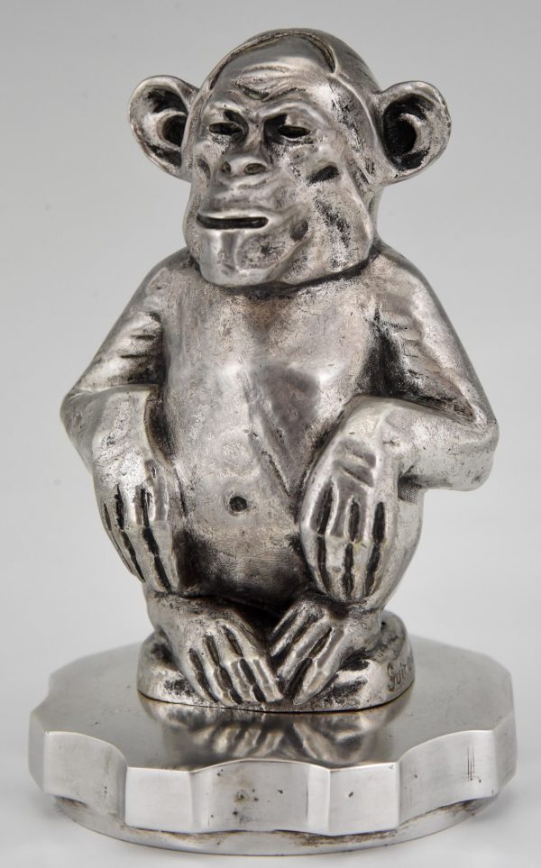 Art Deco bronze sculpture car mascot monkey chimpanzee