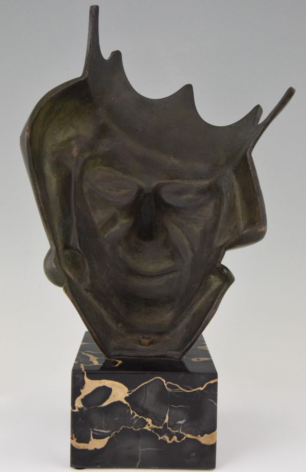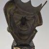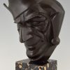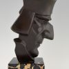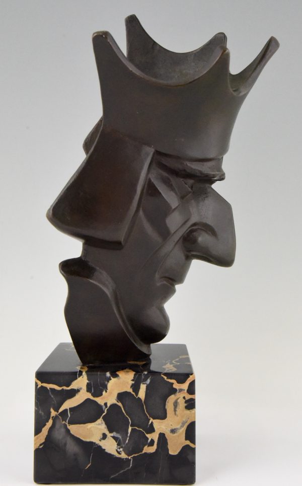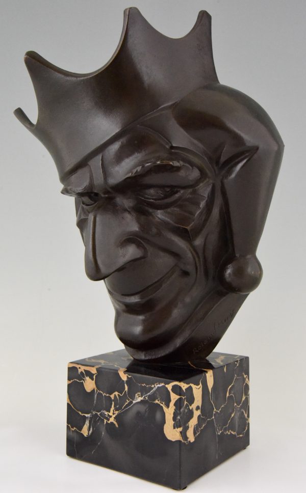 Hard to find Art Deco bronze sculpture of a court jester with crown.