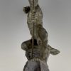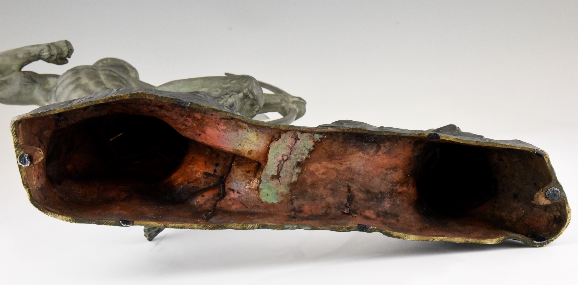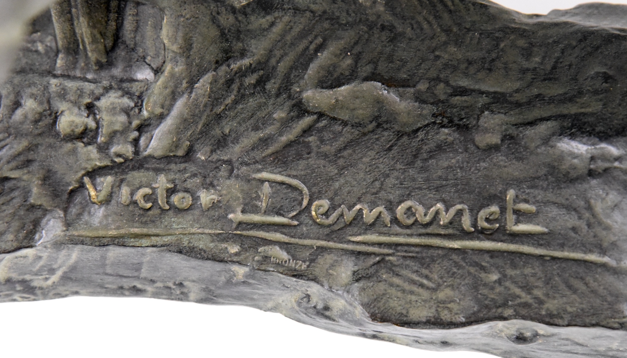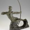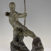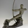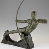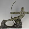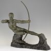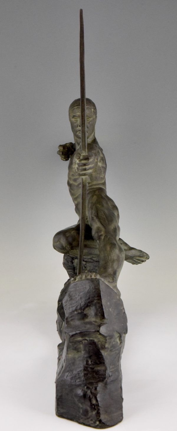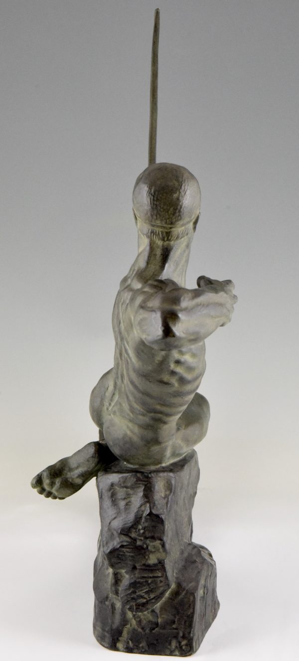 Beautiful Art Deco bronze sculpture of a male nude with bow. The title of this work is Hercules. Signed by Victor Demanet, a famous French artist. The bronze has a lovely green patina, ca. 1925.