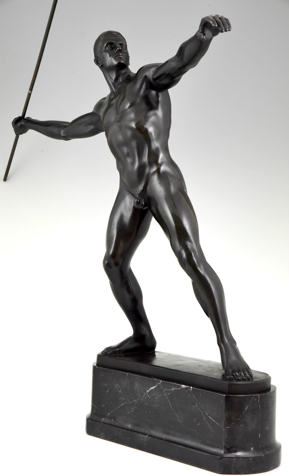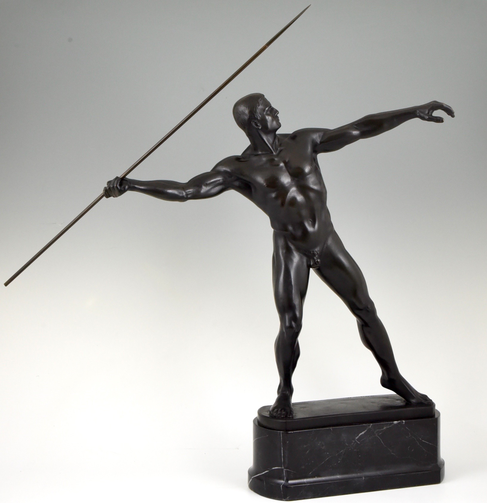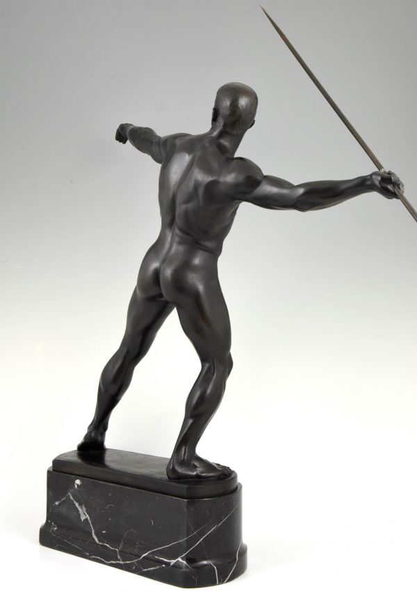Art Deco bronze sculpture of a javelin thrower by Karl Möbius, Germany 1876-1953