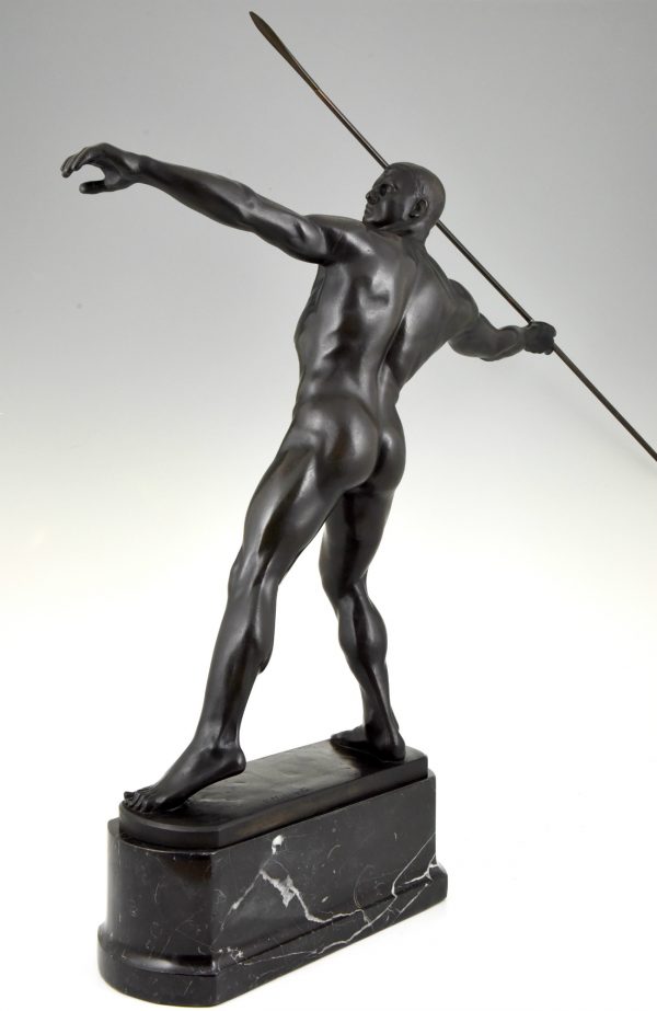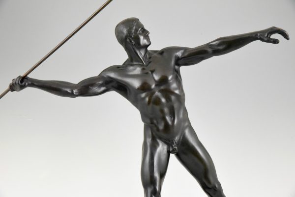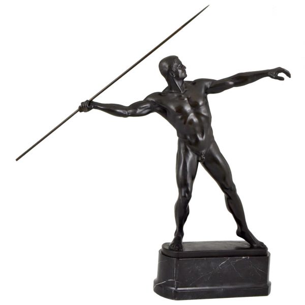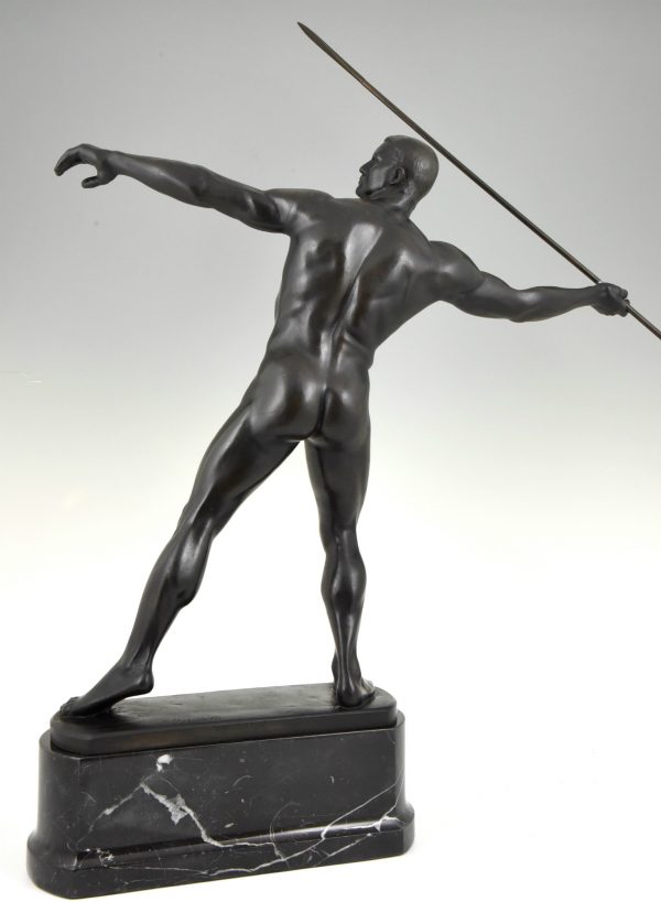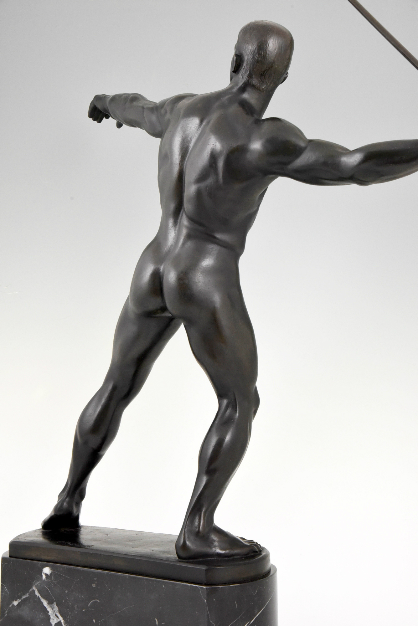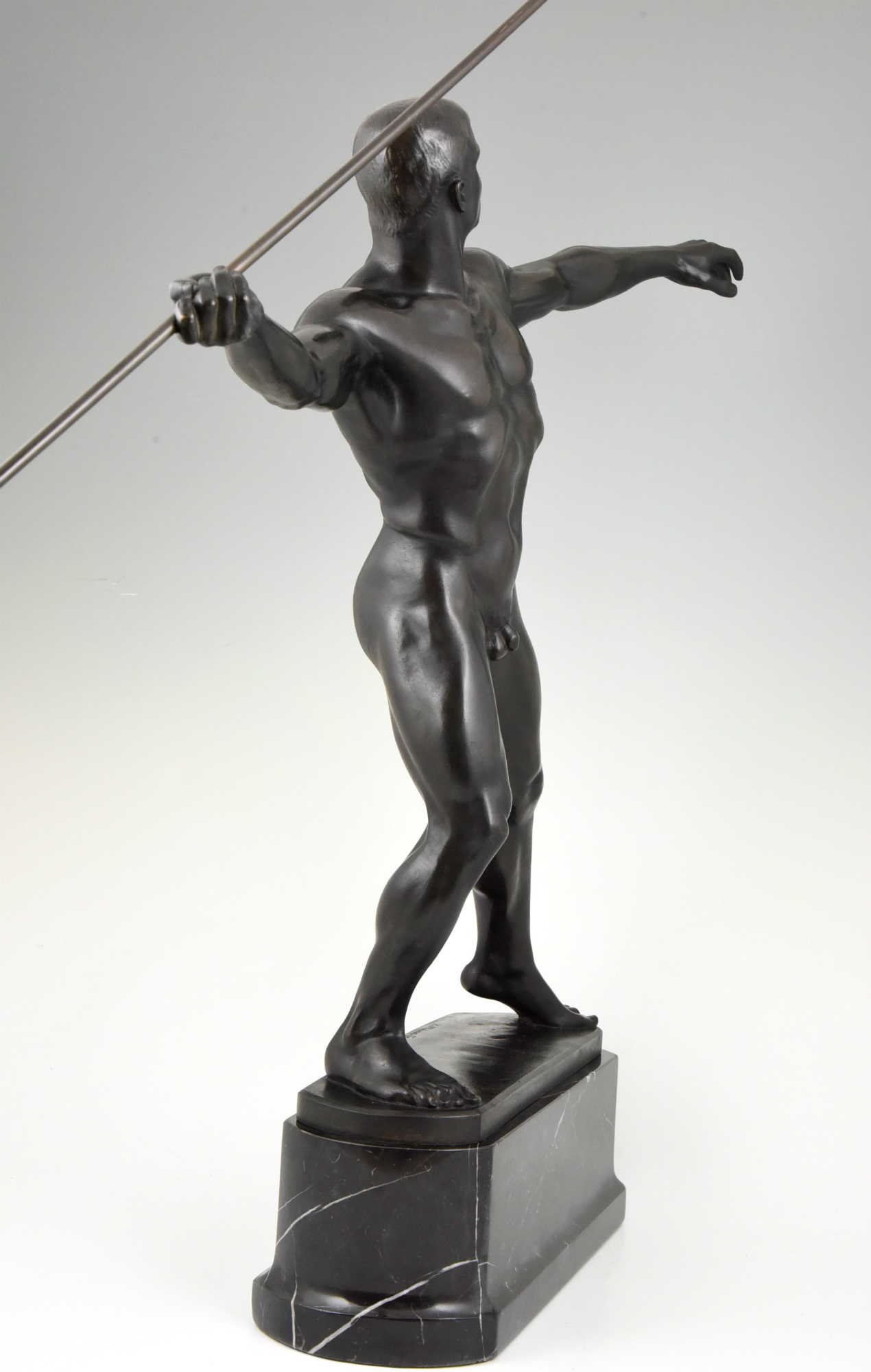 Art Deco bronze sculpture of a javelin thrower by Karl Möbius, Germany 1876-1953