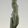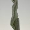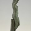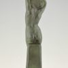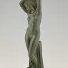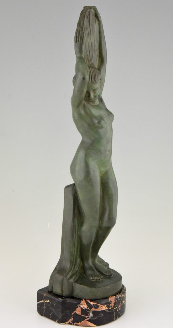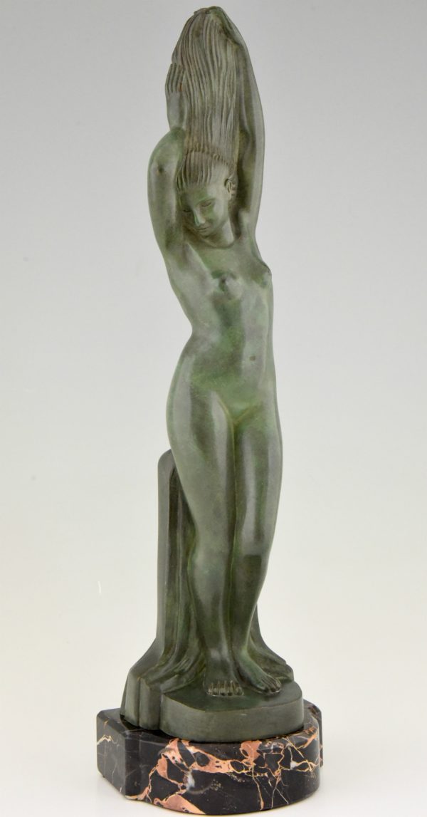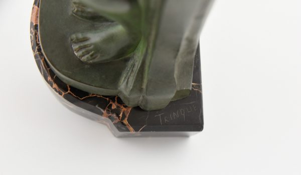 A very rare model of a standing draped nude by F. Trinque. This is very stylish Art Deco bronze with a nice green patina. A fine Portor marble was used for the base.