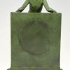 Patinated Art Metal on Black marble base. Ca. 1930.