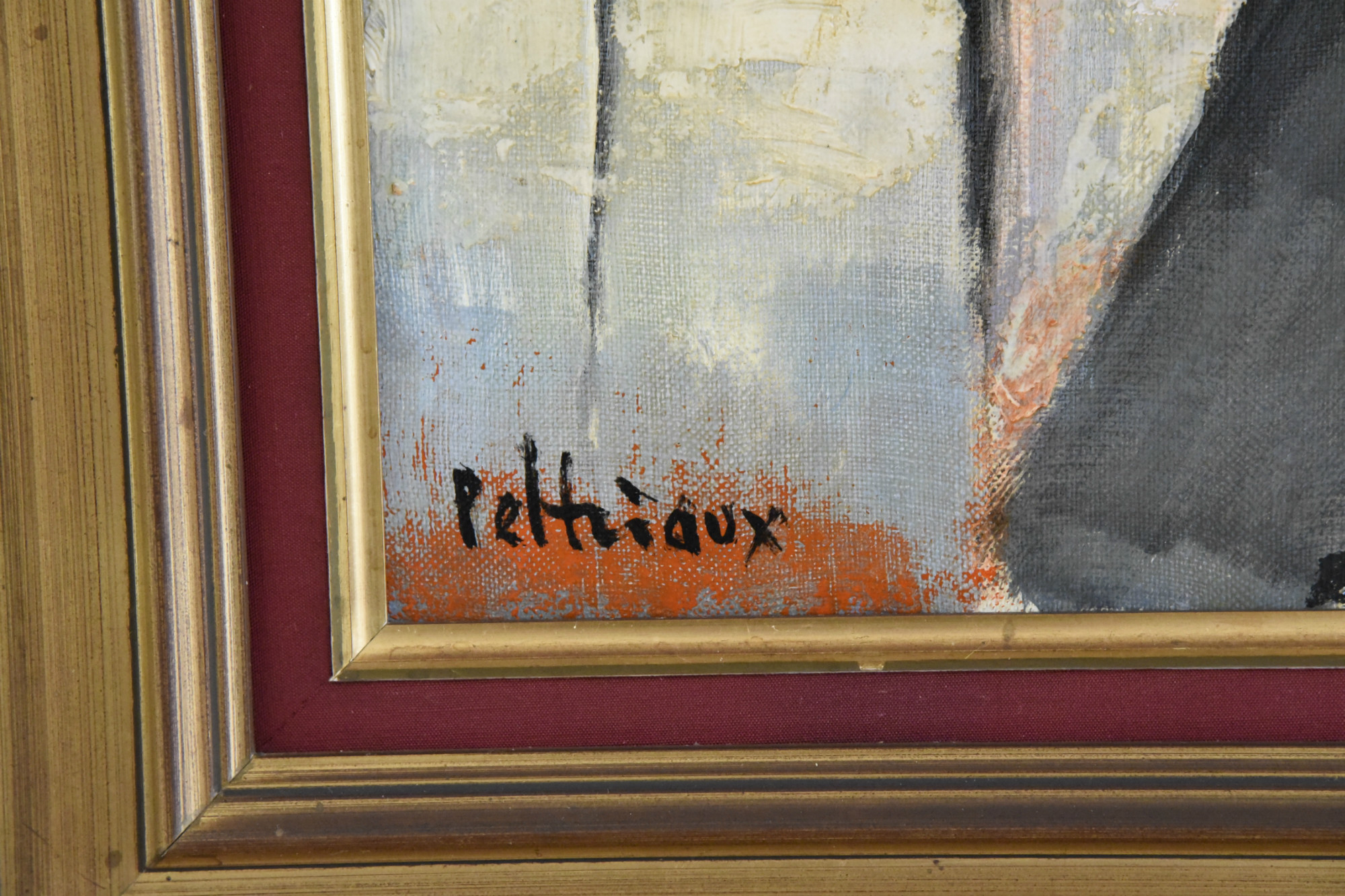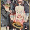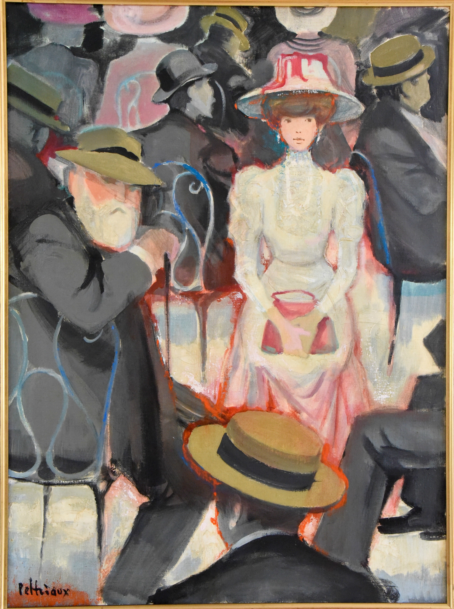 Art Deco painting of a lady and gentleman at a sunny terrace in France by the french artist Bernard Peltriaux.