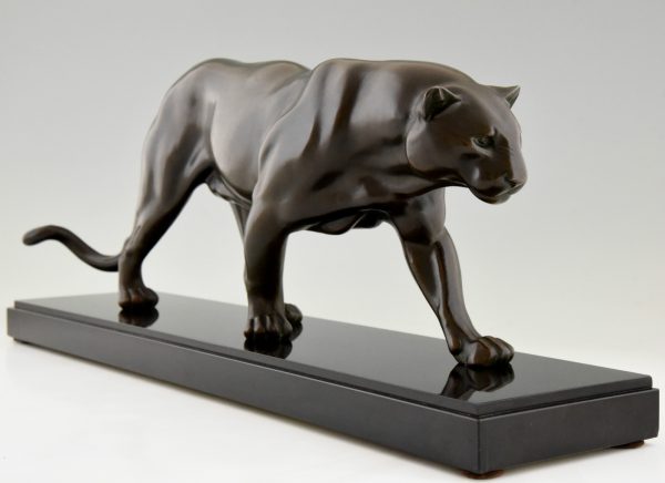 Impressive Art Deco sculpture of a walking panther signed by the French artist Rulas.