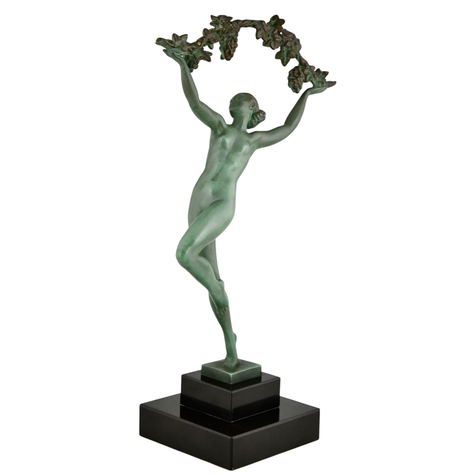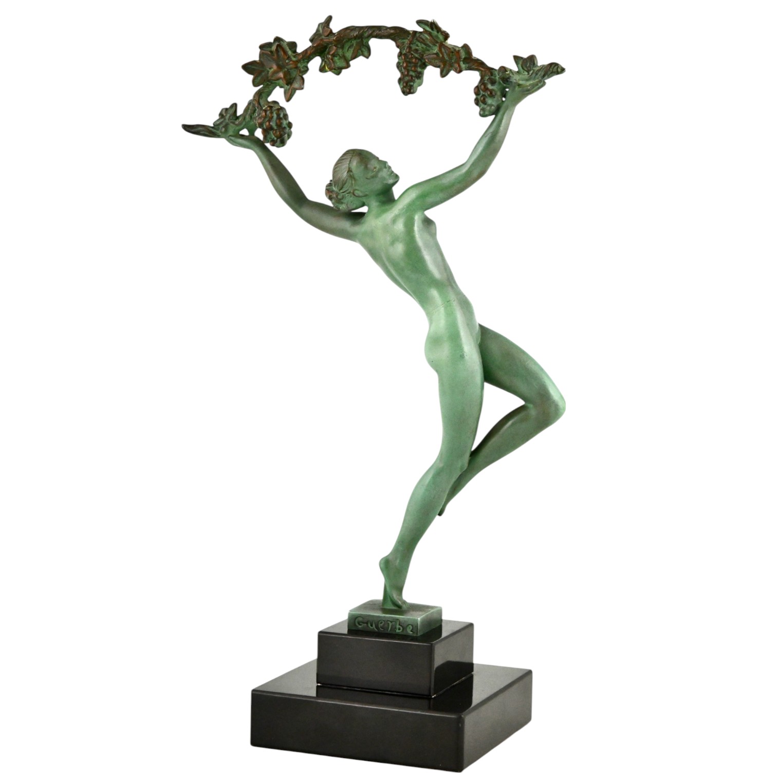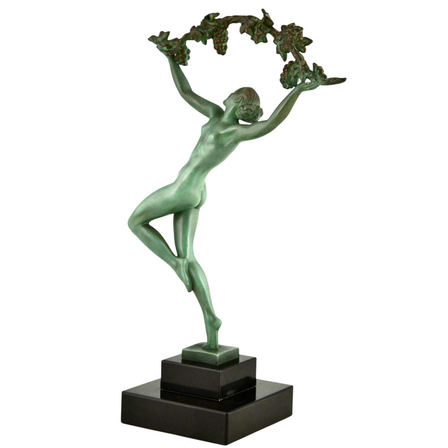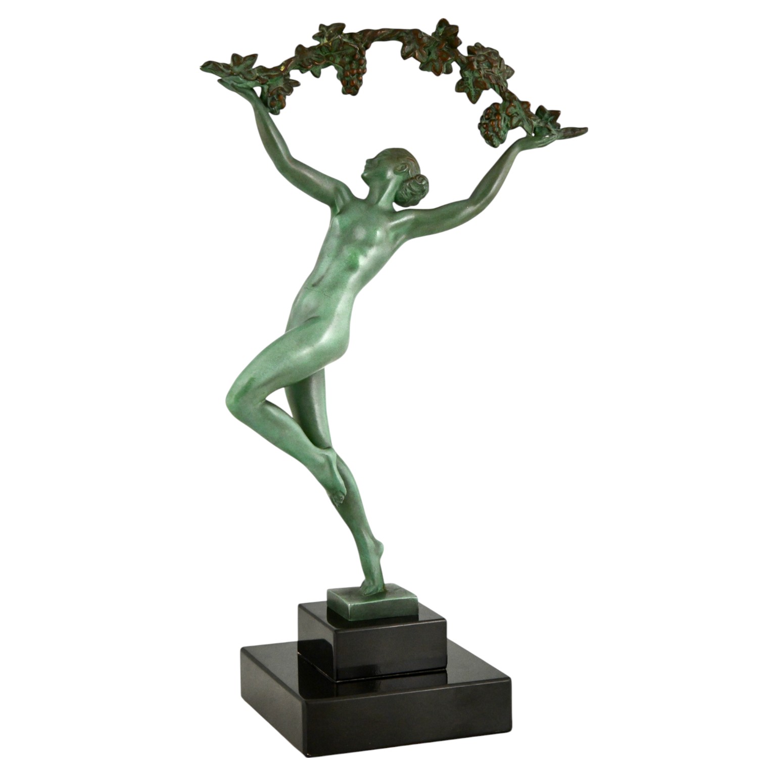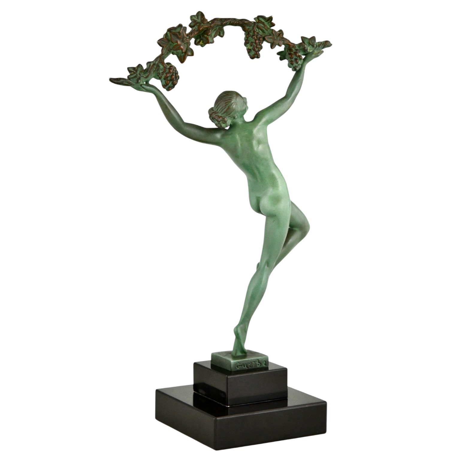 Art Deco sculpture dancer with grapes Griserie Raymonde Guerbe.
