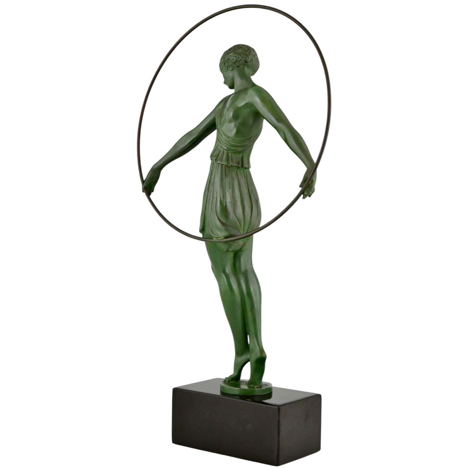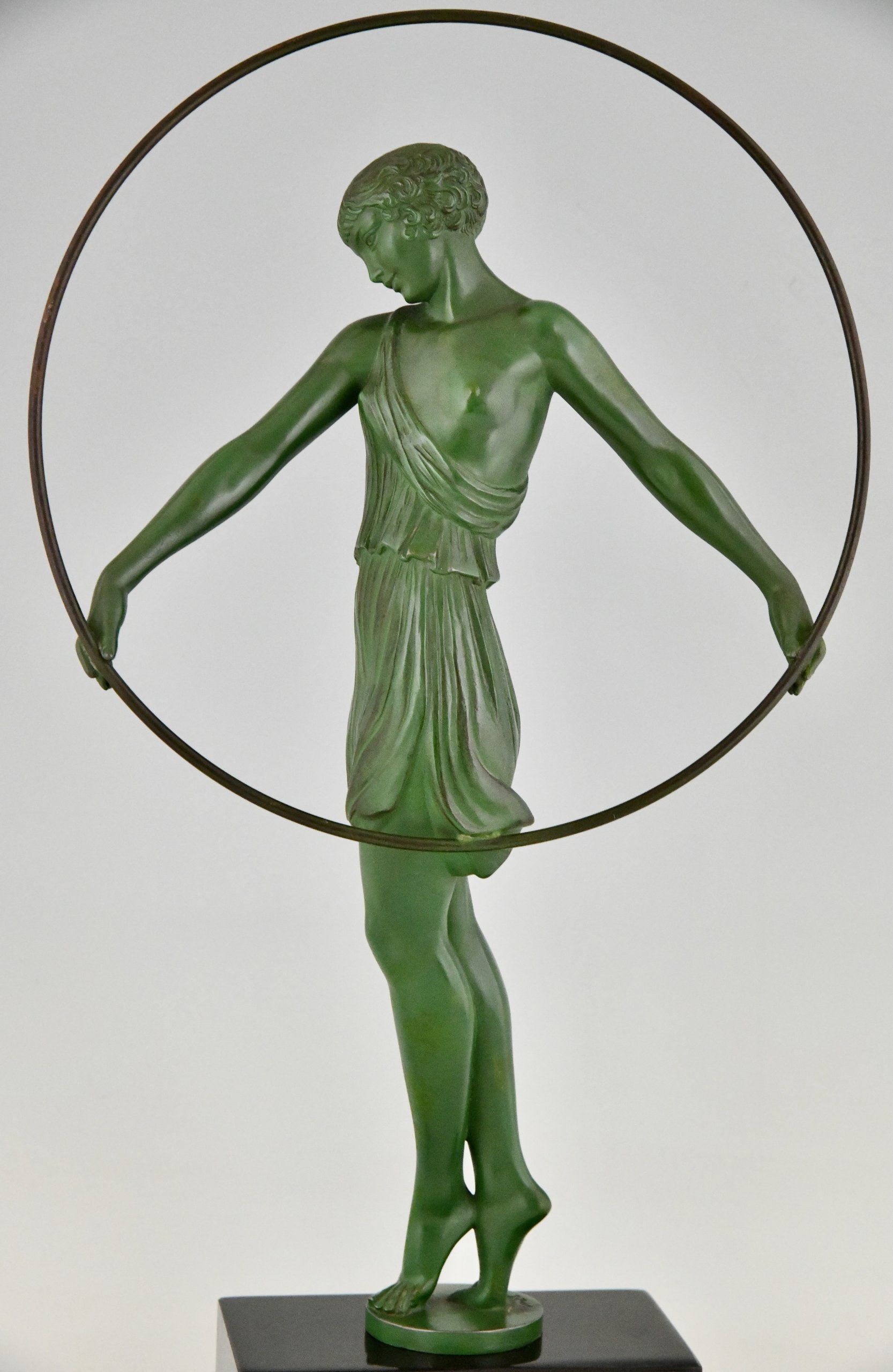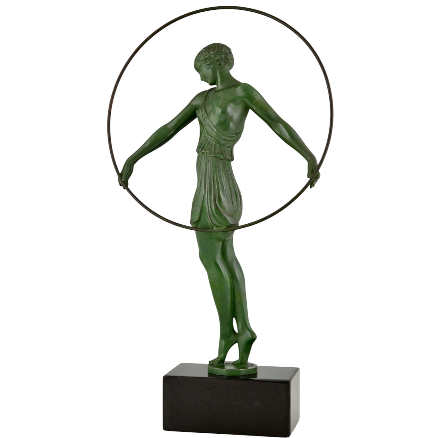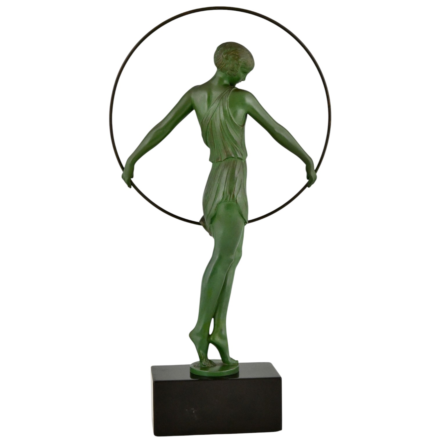 Enrich your collection with this authentic Art Deco sculpture Harmonie, a refined hoop dancer created circa 1930 by Fayral — the pseudonym of renowned French sculptor Pierre Le Faguays. This elegant piece was cast by the prestigious Max Le Verrier foundry and bears the original signature Fayral.