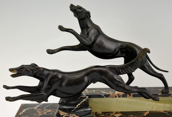 The sculpture is mounted on a fine onyx and marble base. Ca. 1930,