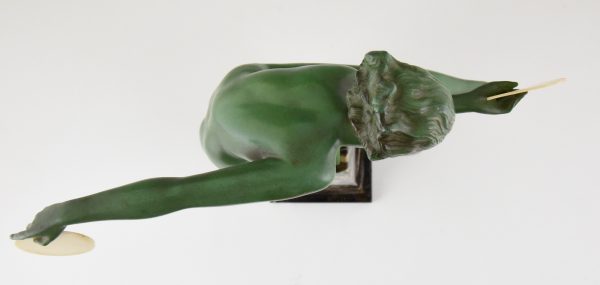 19.7 inch tall. Signed Derenne. Pseudonym used by Marcel Bouraine for his art metal sculptures cast by the Max Le Verrier foundry.