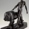 Art Deco sculpture of a male nude with lion, lion tamer.
