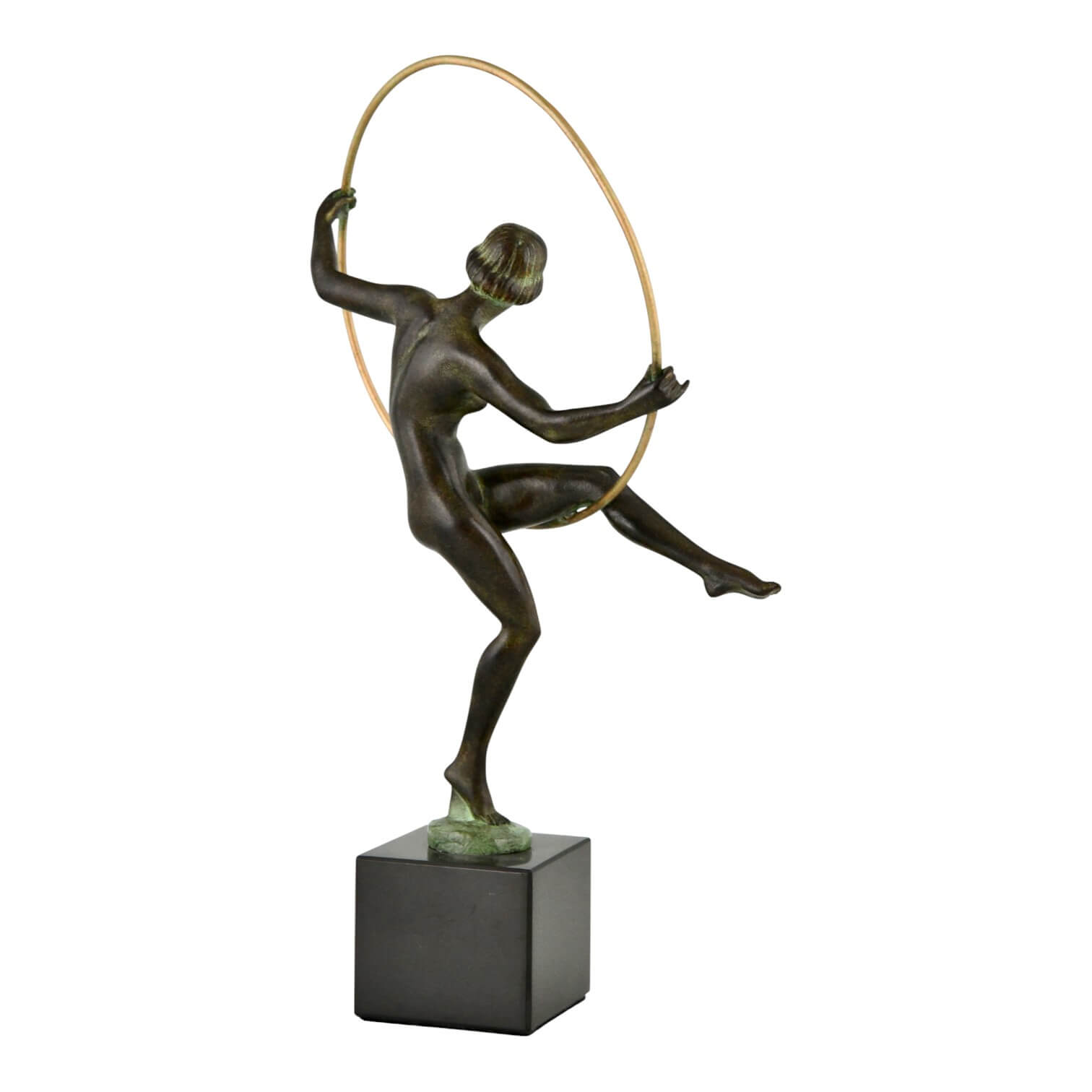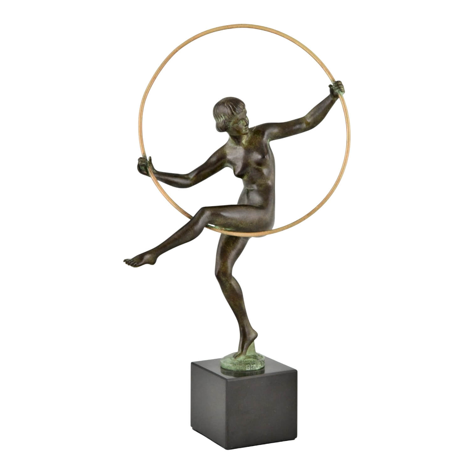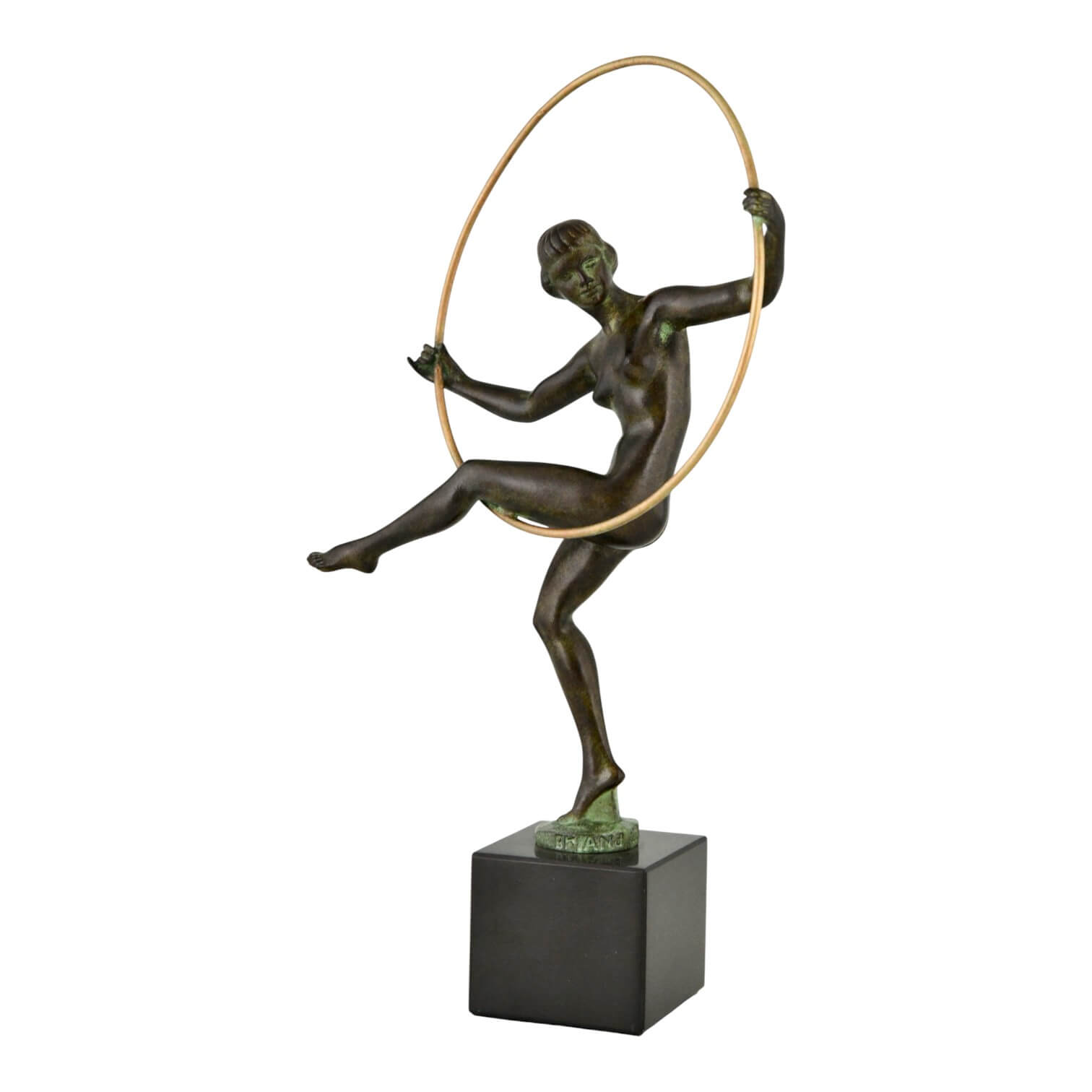 Art Deco style sculpture hoop dancer signed by Briand, the pseudonym of Marcel Bouraine, cast by the Le Verrier Foundry