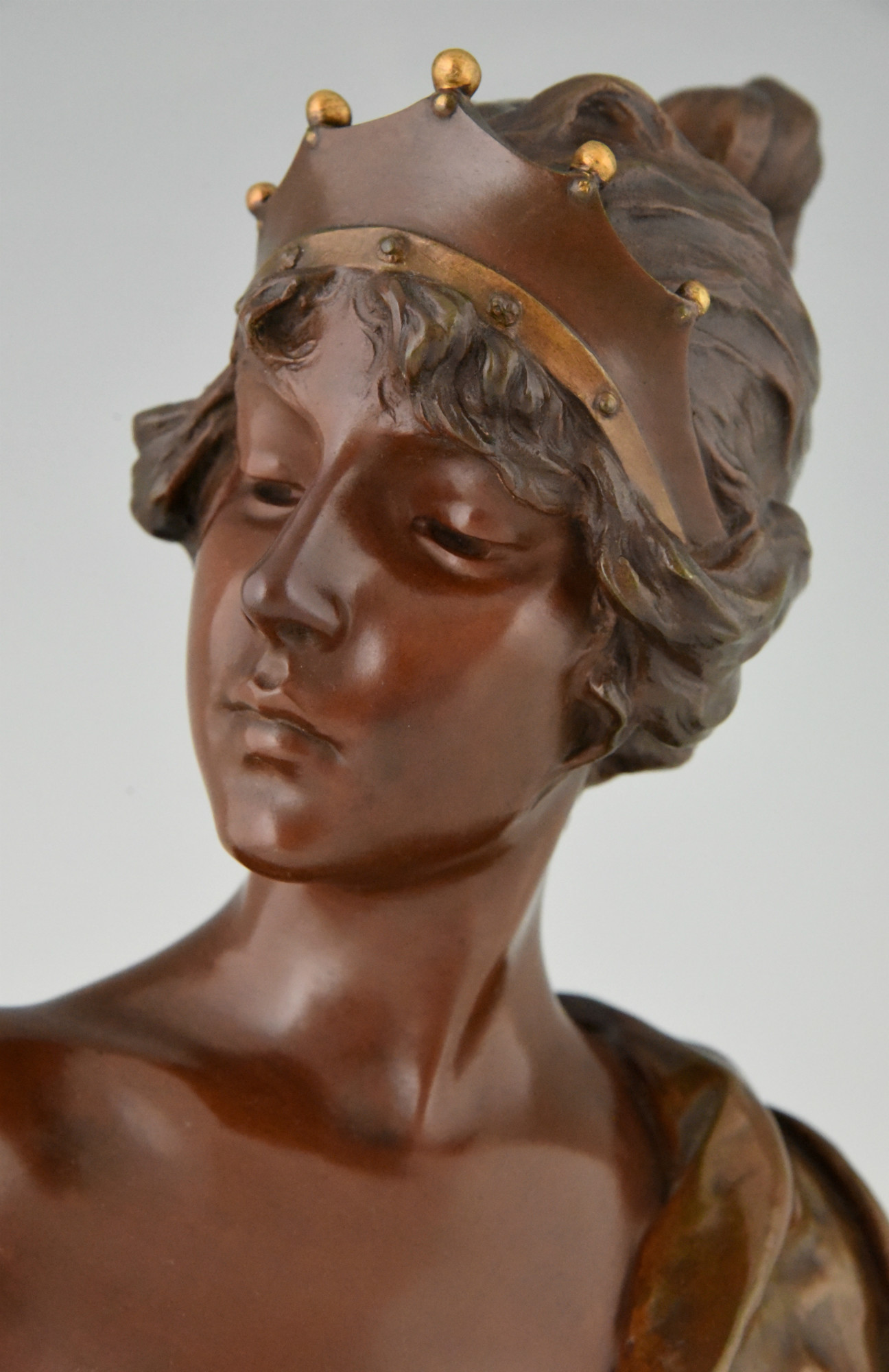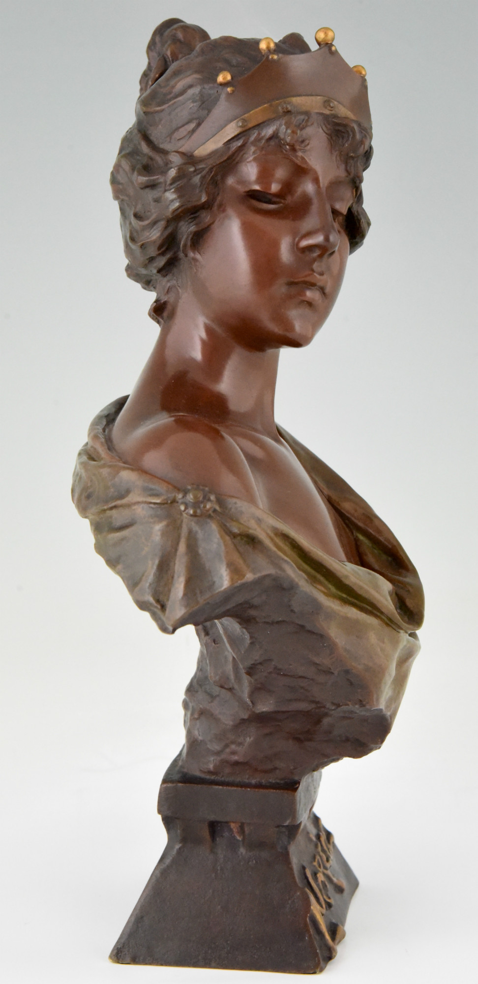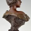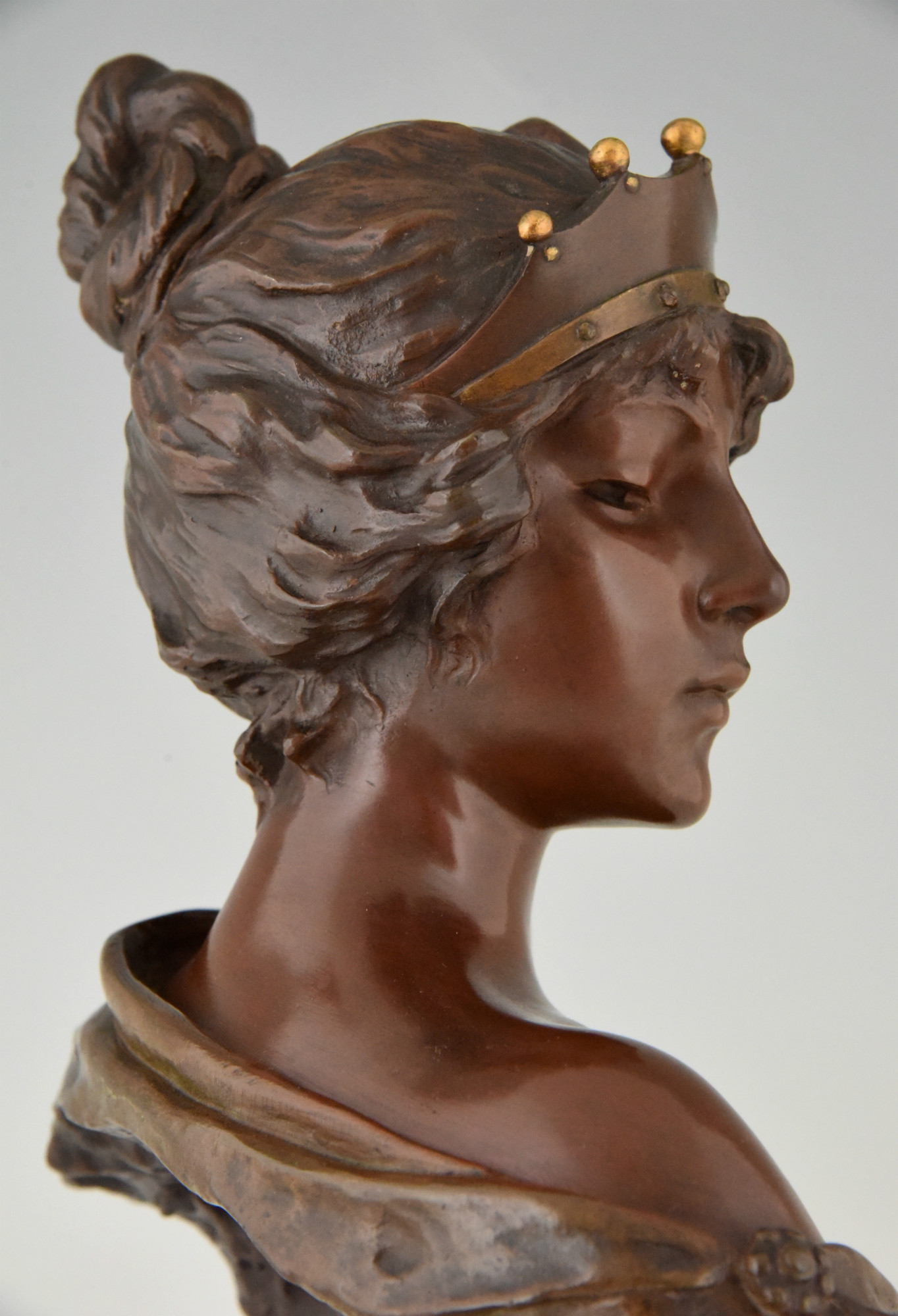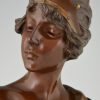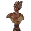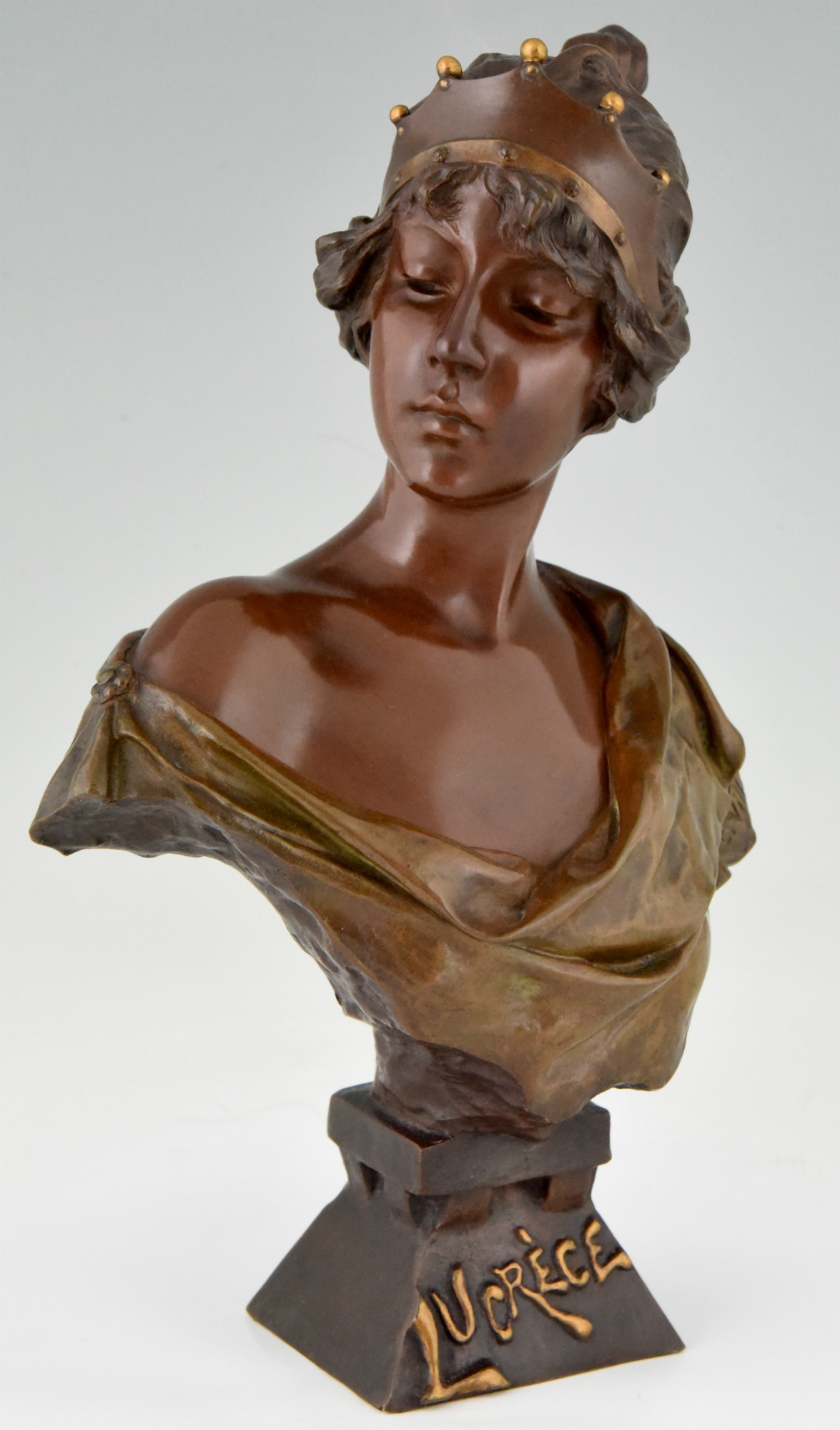 Art Nouveau bronze bust woman with crown Lucrece