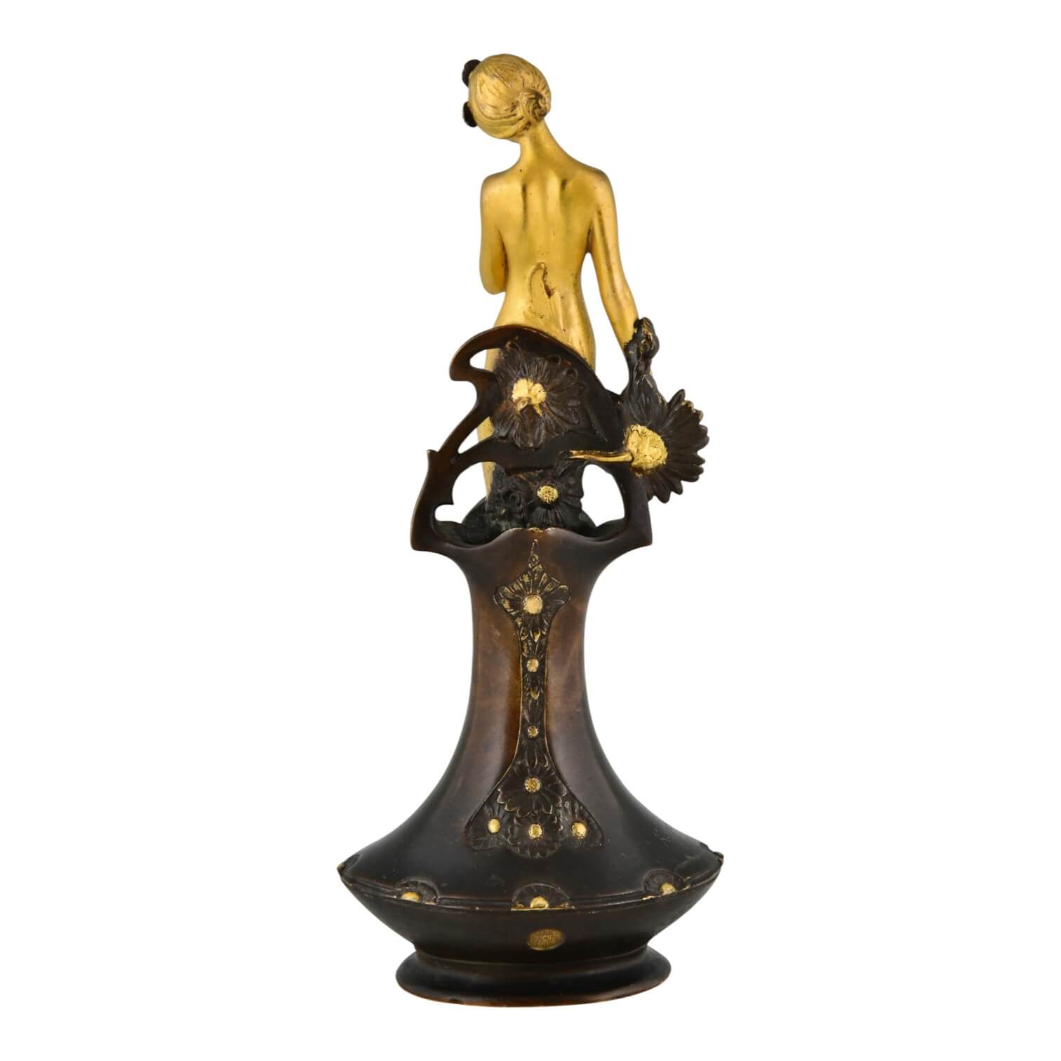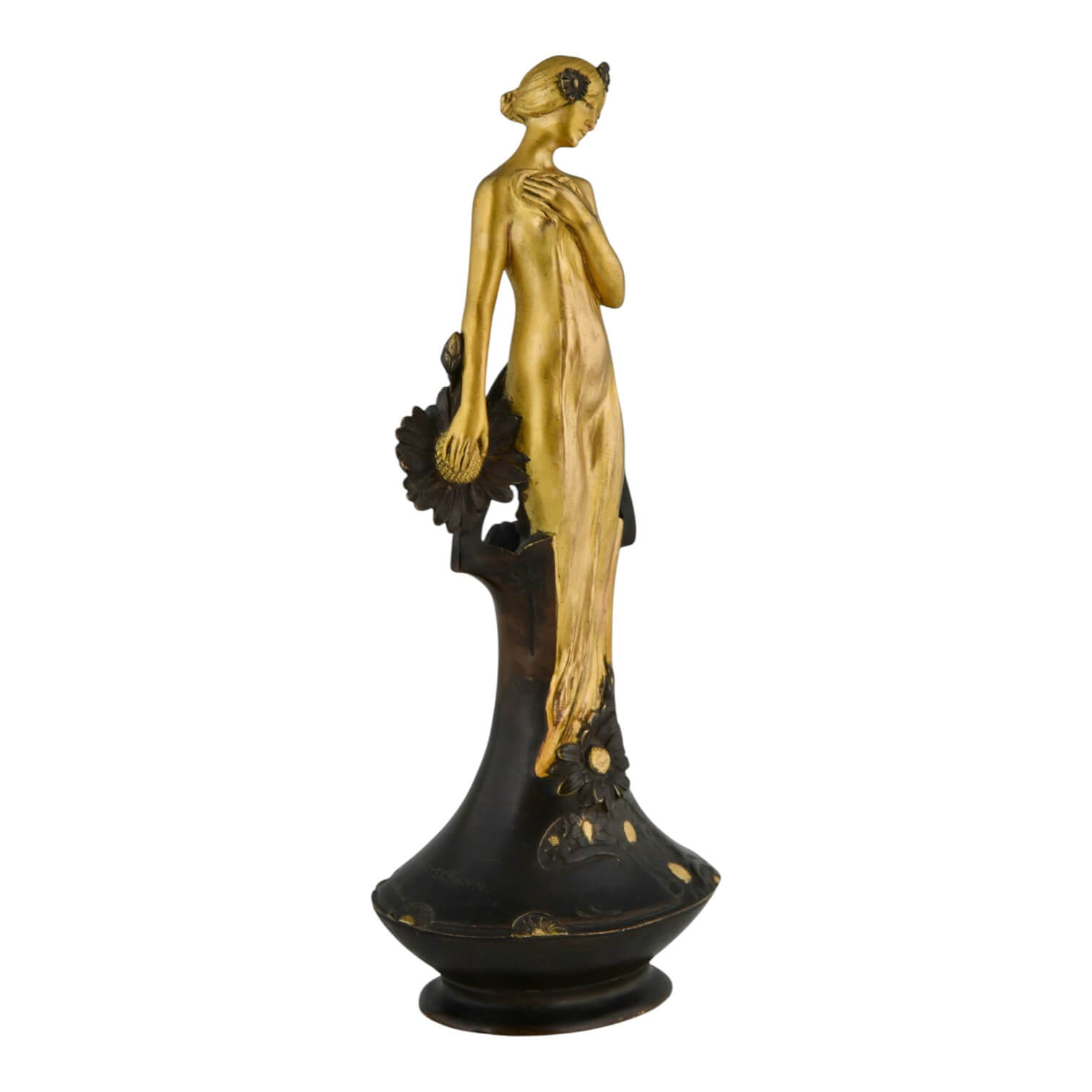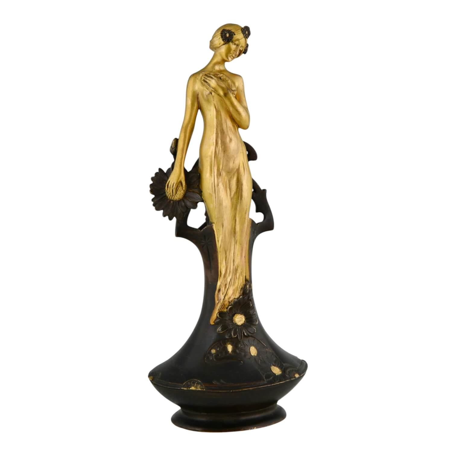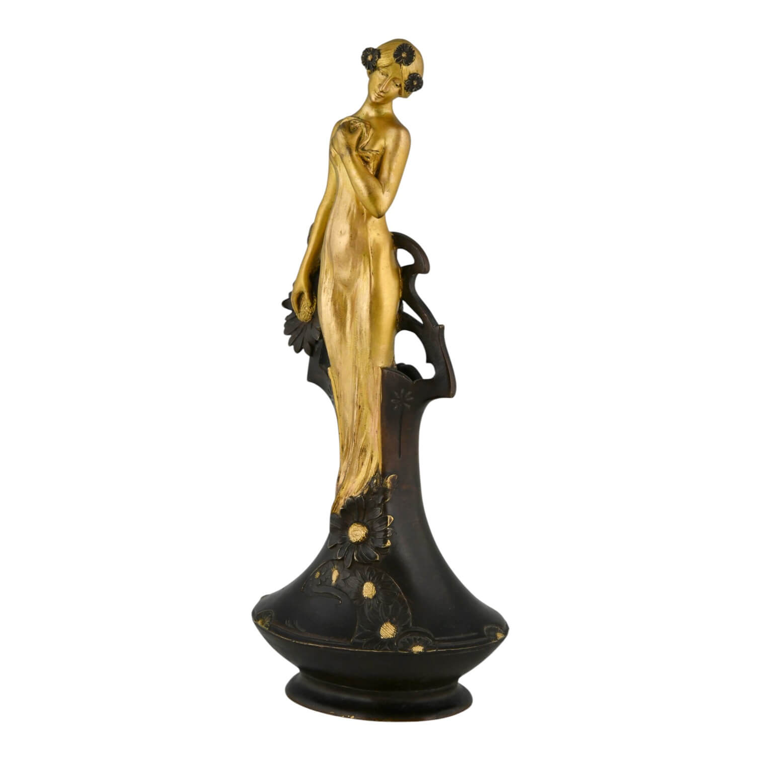 Art Nouveau bronze vase with lady