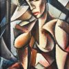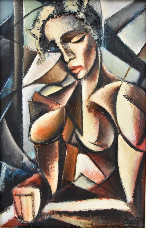 Cubist, high relief oil painting of a nude by the Italian artist Walter Coggio, (1935-2016) Wooden frame. Ca. 1960.
