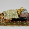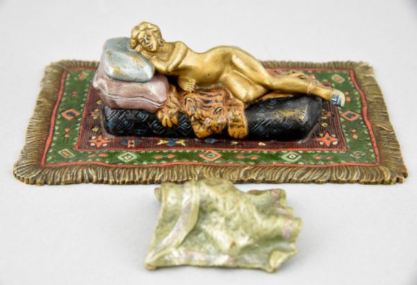 Erotic Orientalist cold painted Vienna bronze, nude lying on a matrass with tiger skin. The cover can be removed.
