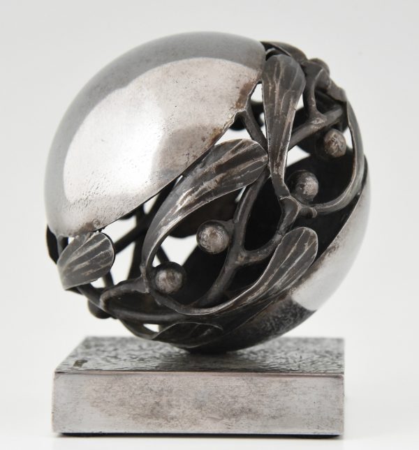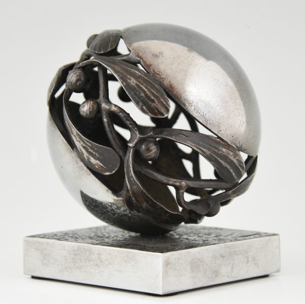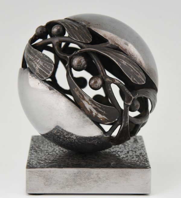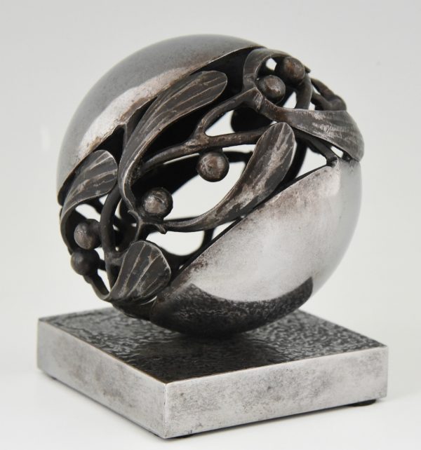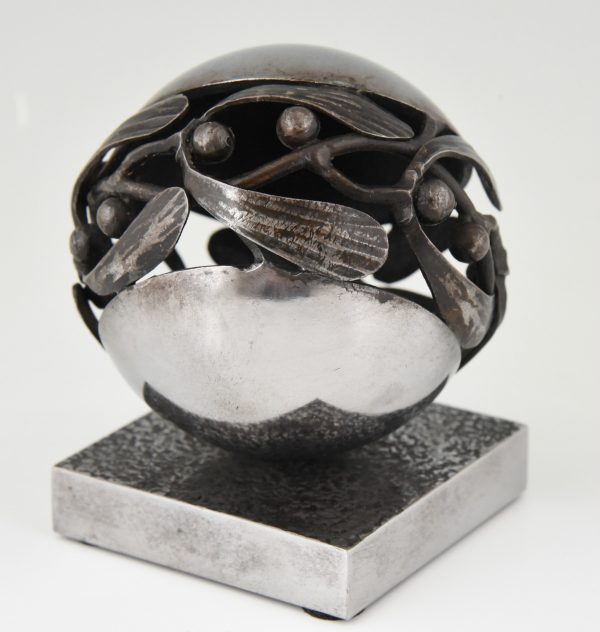 A wrought iron Mistletoe paperweight by Edgar Brandt.
