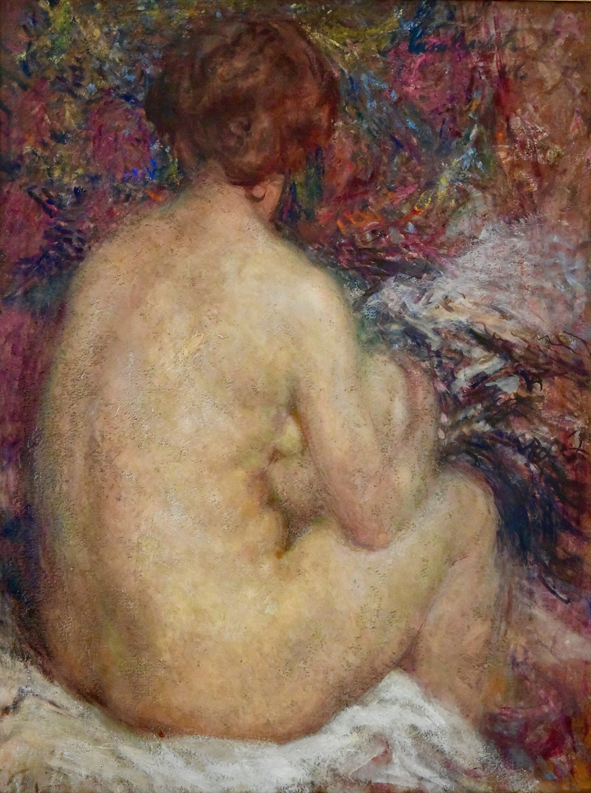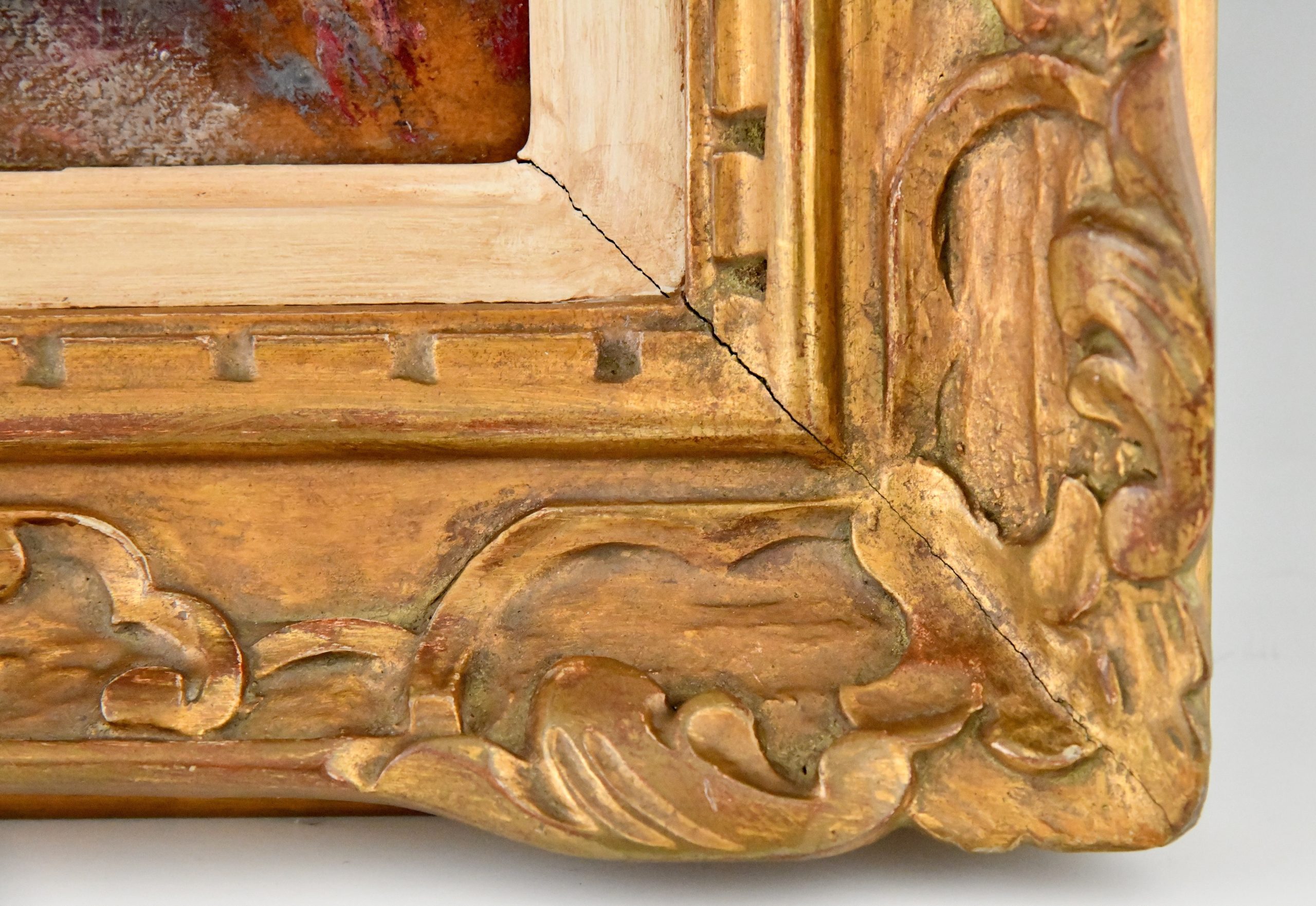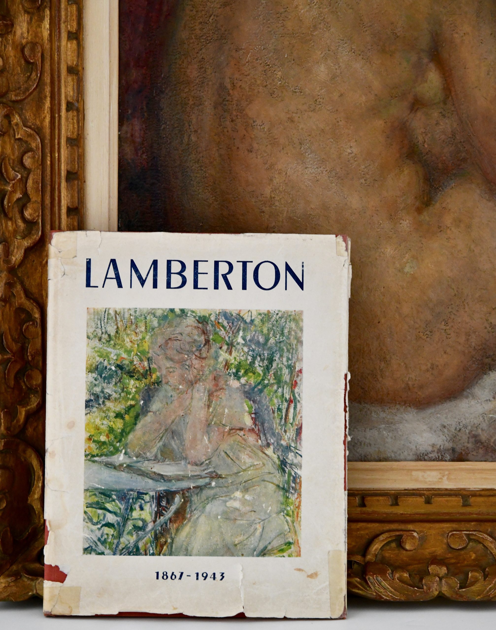 Impressionist painting of a seated nude by Joseph Louis Lamberton 1867-1943. Oil on board. Original gilt wood frame. France 1906.