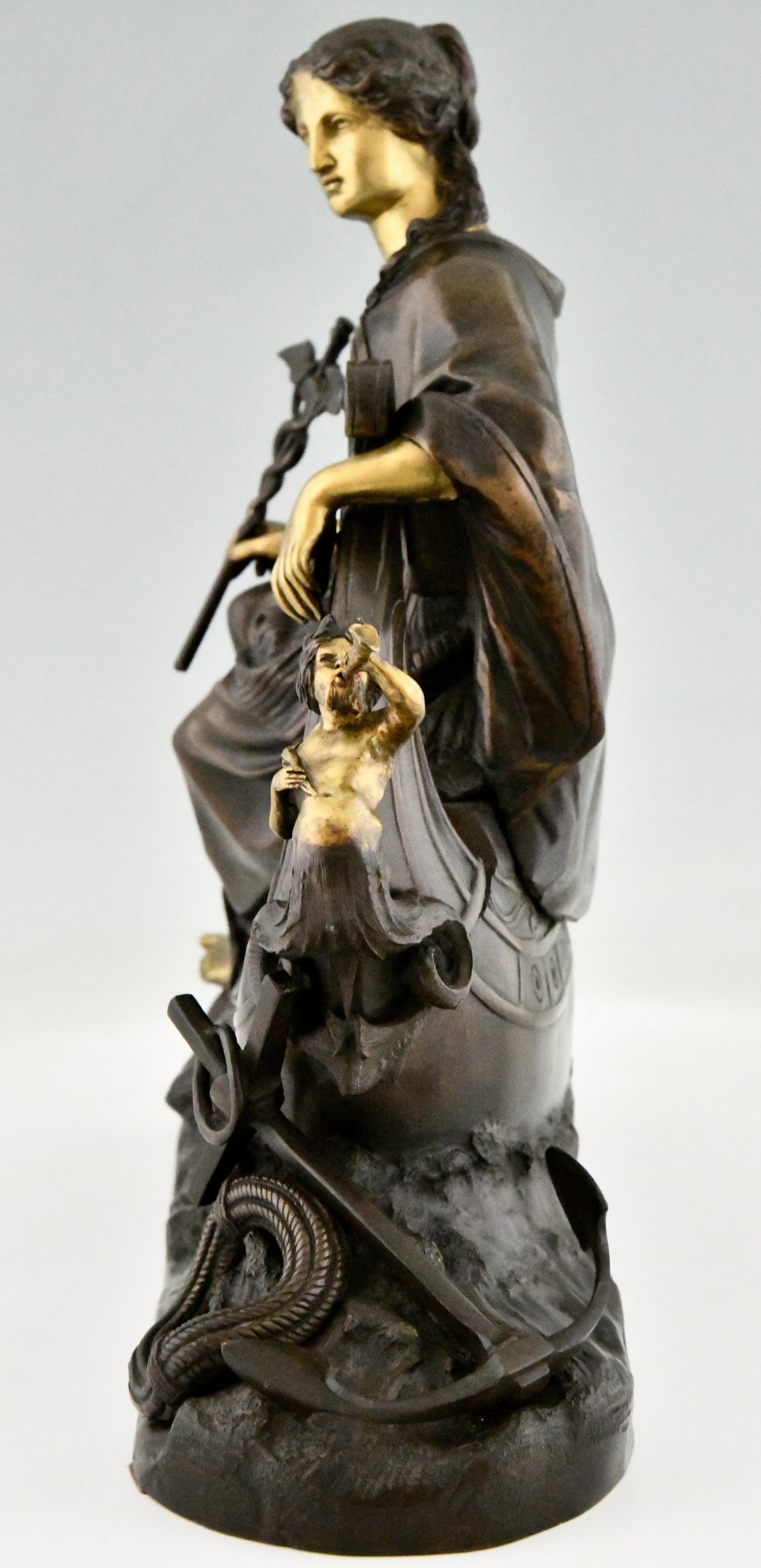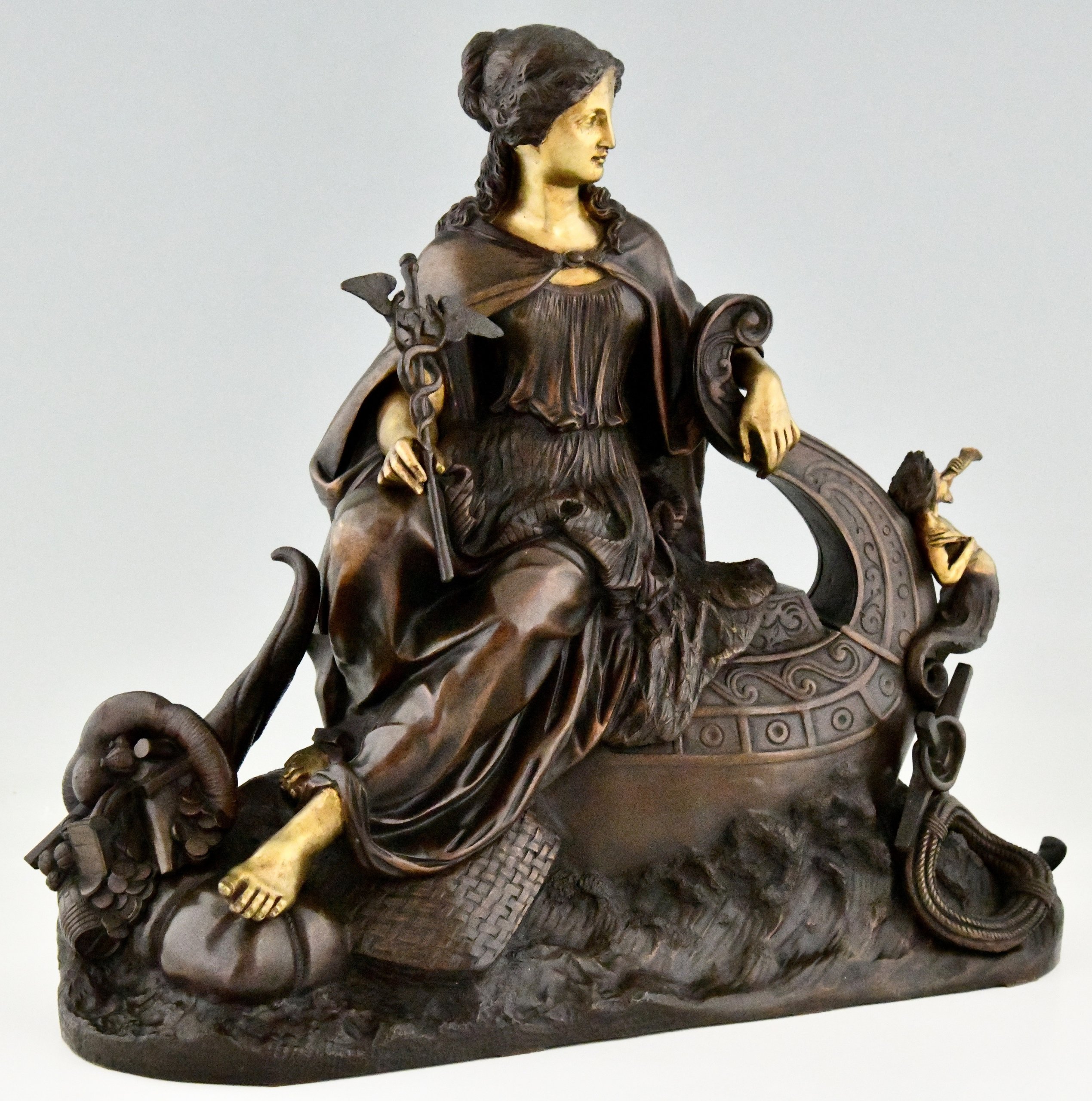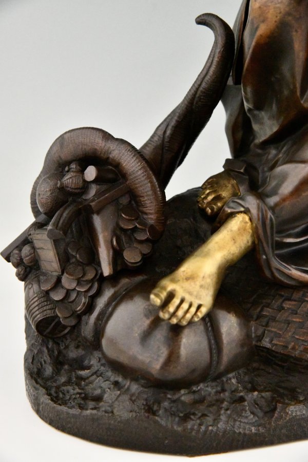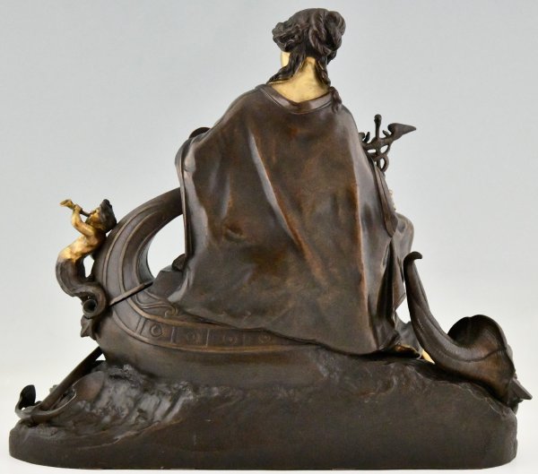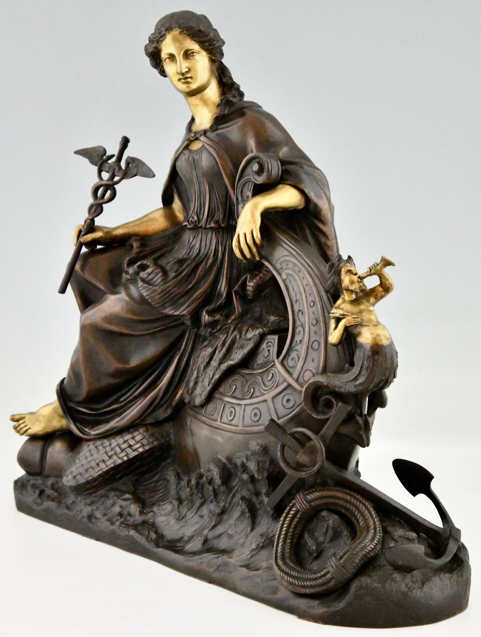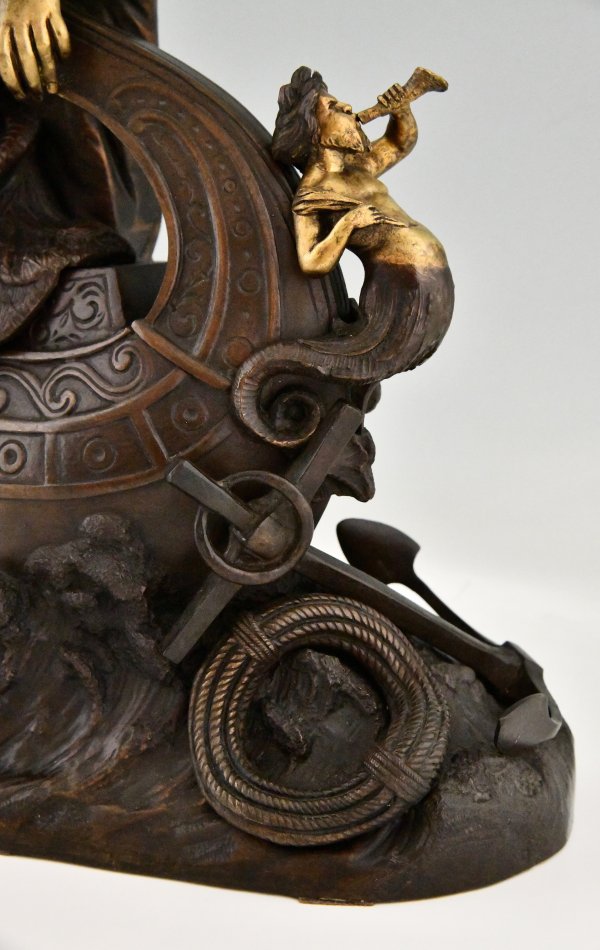 Antiek bronzen beeld vrouwe Fortuna, Allegorie van de zeehandel.