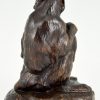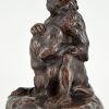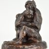 Antique bronze sculpture of two monkeys, mother and child by the French artist Thomas Cartier, 1879-1943, with a beautiful darkbrown patina.