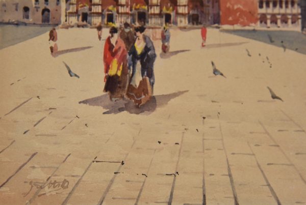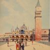 Aquarel Venetië, vrouwen op het San Marco plein