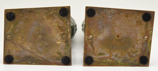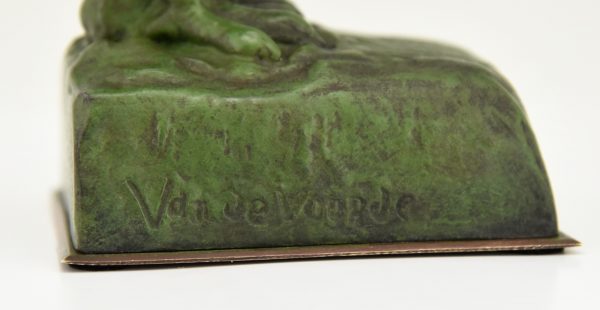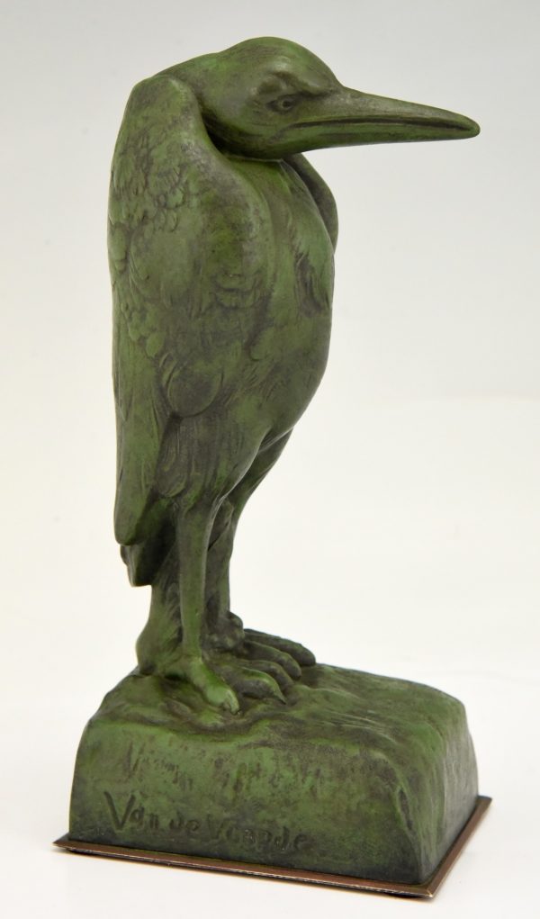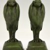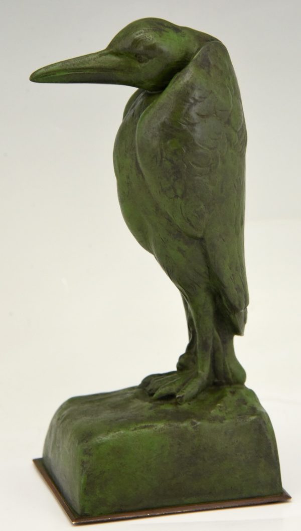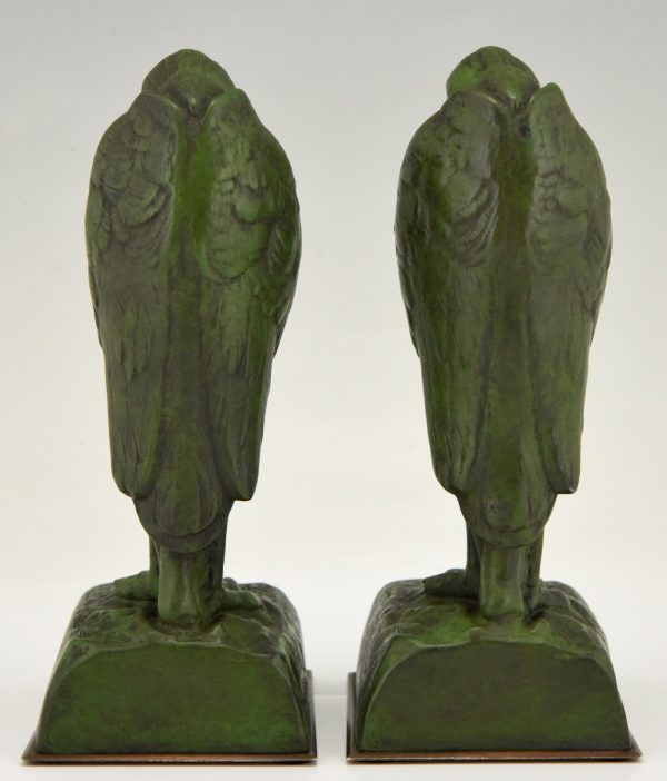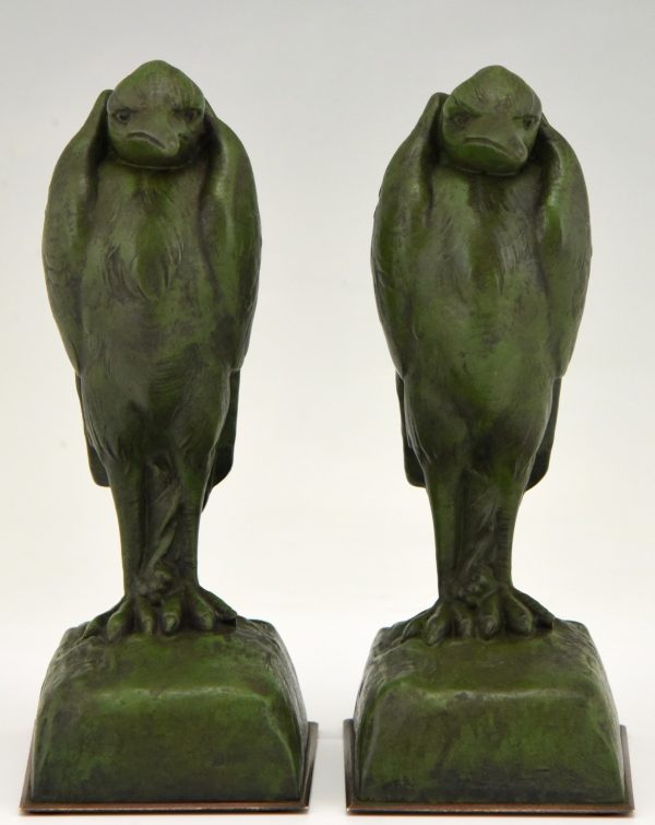 Belgian artist born in 1878 worked in France. The bird sculptures are in Art Metal with a dark green patina.