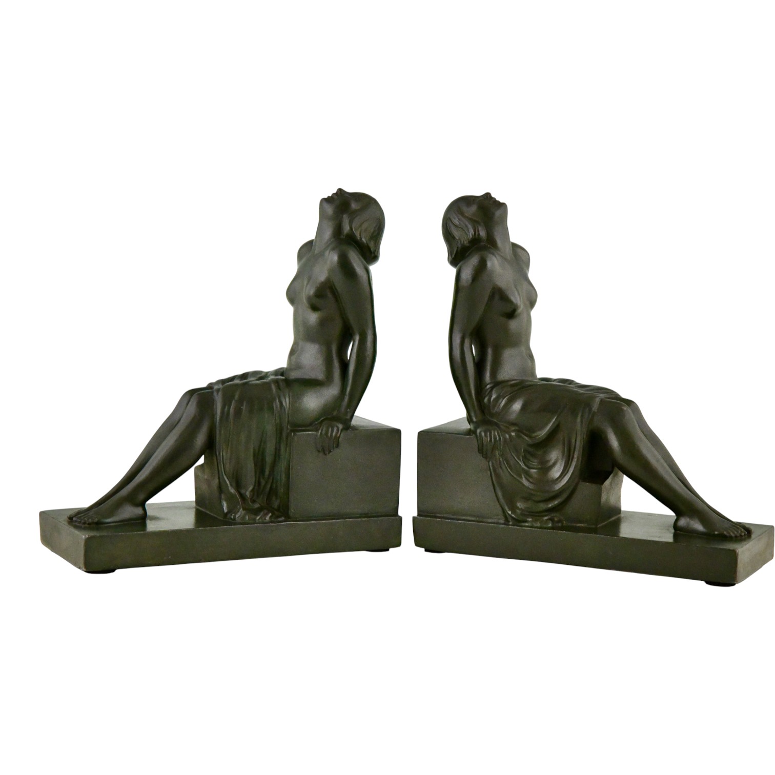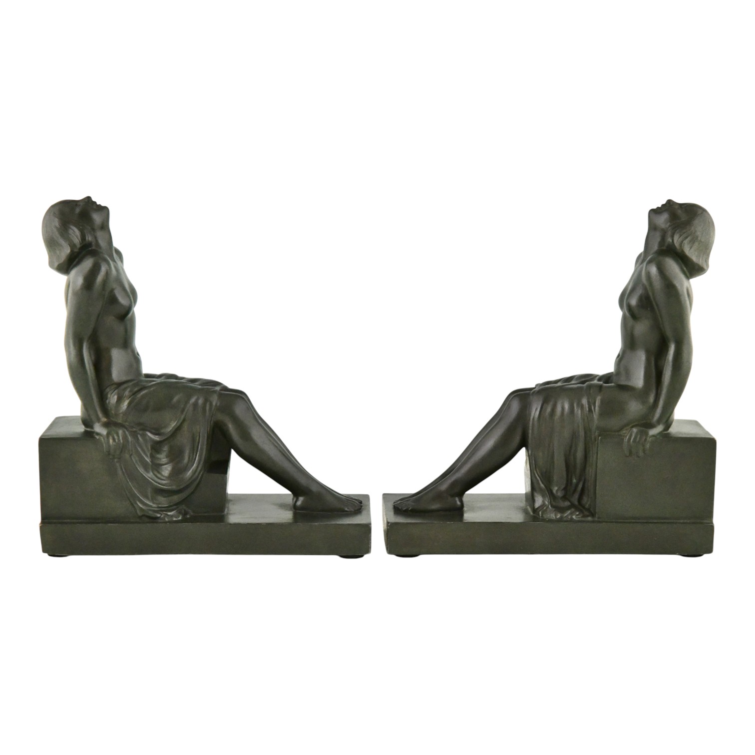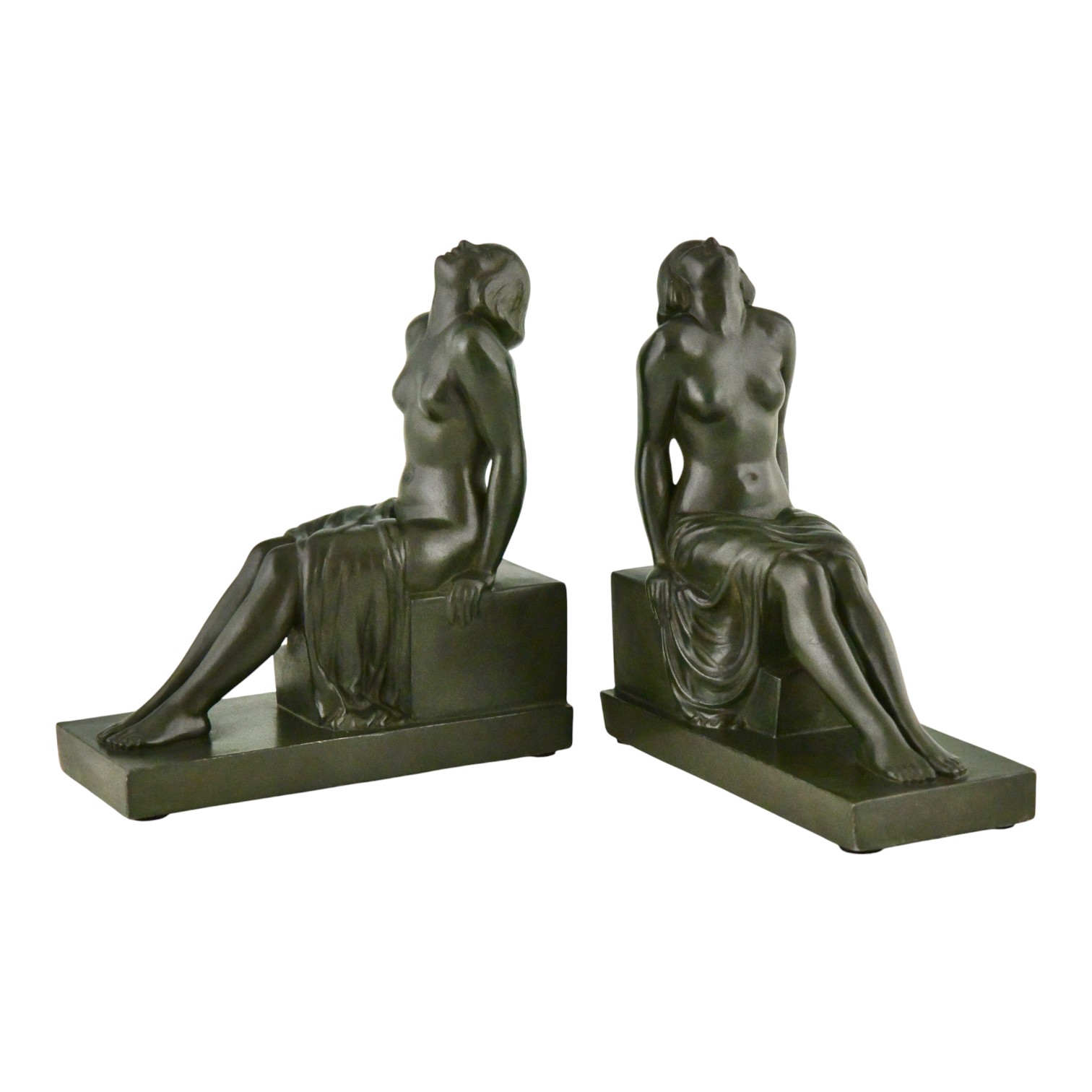 Art Deco boekensteunen zittend naakt INSOUCIANCE