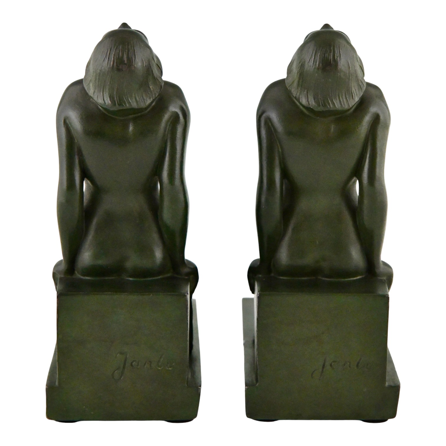 Art Deco boekensteunen met zittend naakt INSOUCIANCE gesigneerd Janle.