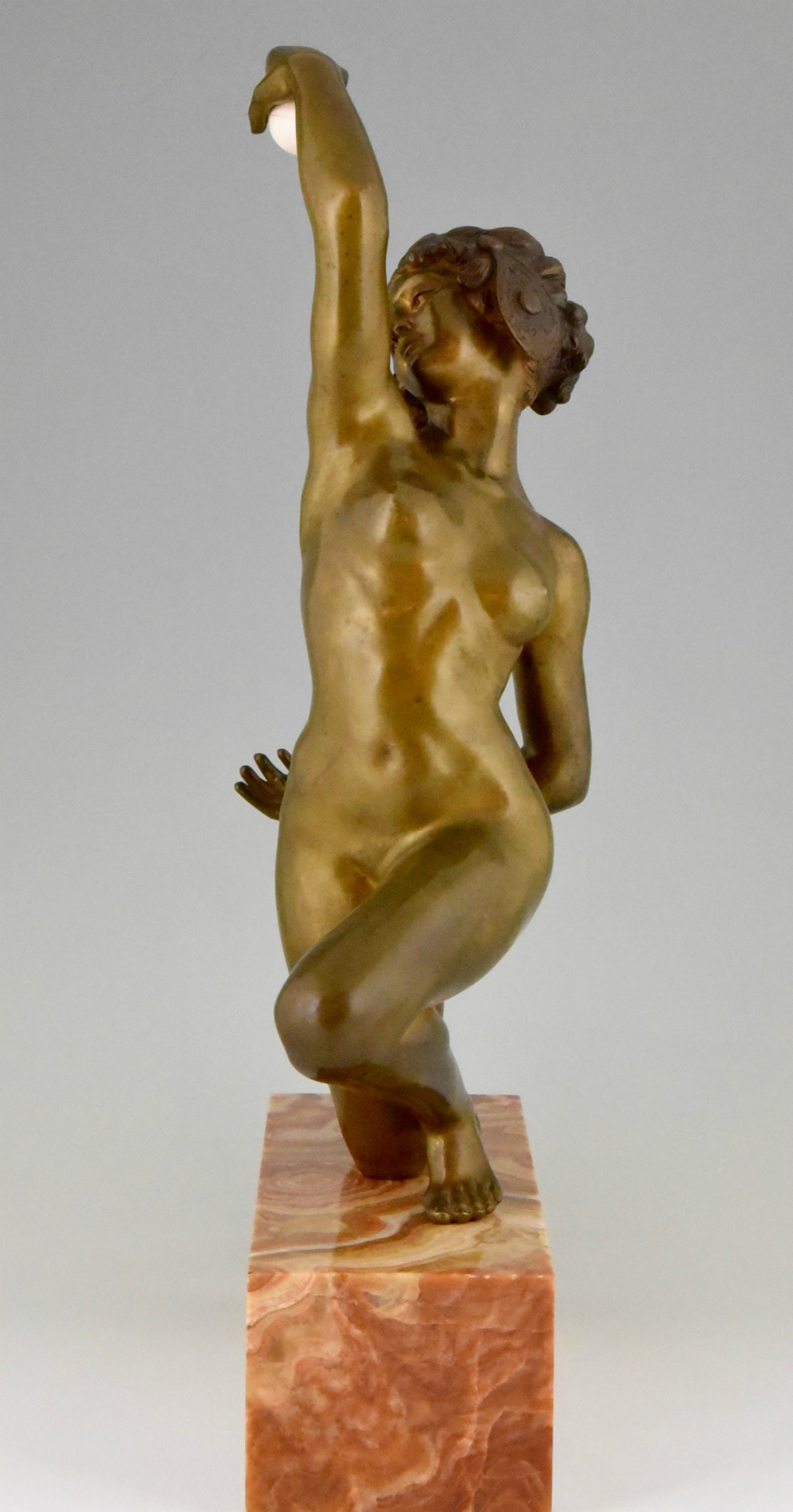 Impressive Art deco bronze of a dancing nude with high ball by the French artist Affortunato Gory. The bronze is mounted on a fine marble base.