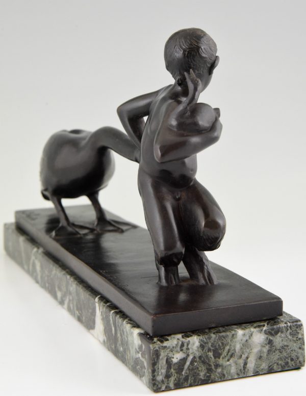Lovely theme for this Art Deco bronze group of a young satyr playing with geese by the French artist Paul Silvestre.
