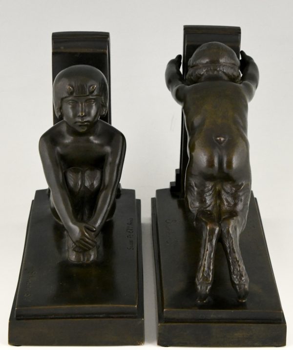 Art Deco bronzen boekensteunen jonge saters