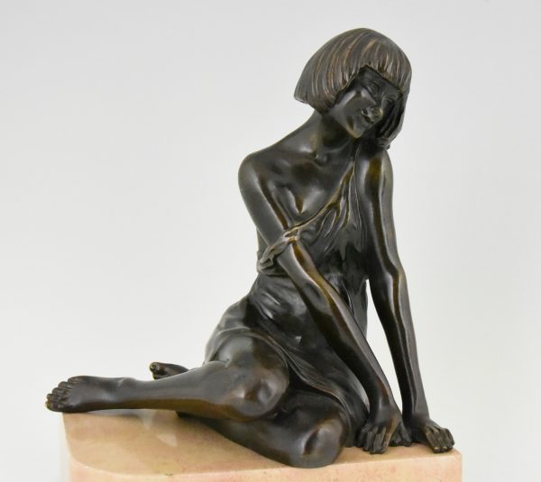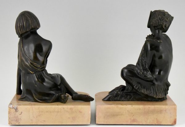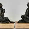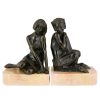 Lovely pair of Art Deco bronze bookends with a sitting faun or satyr and nymph by the famous french artist Pierre Le Faguays.
