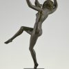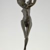 Art deco bronzen danseres, naakt met vogels