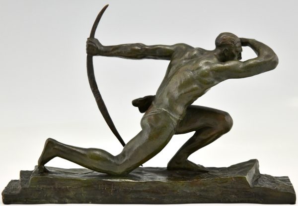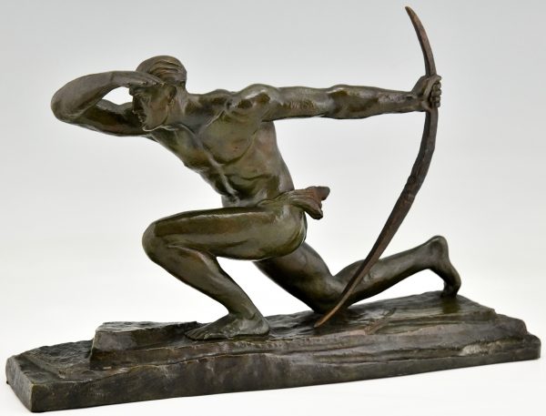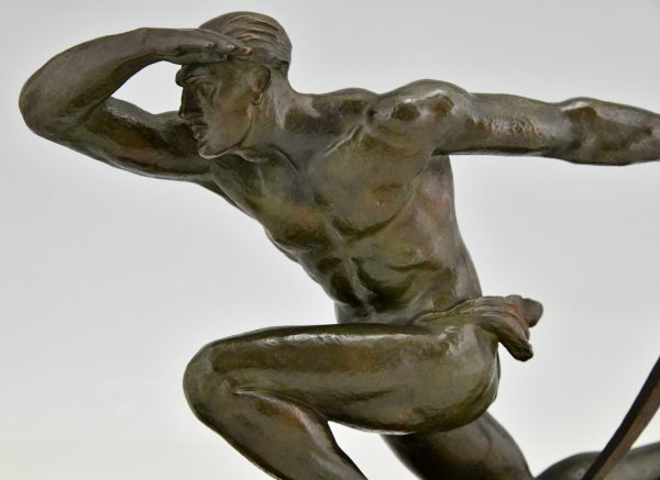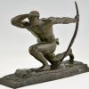 Art Deco bronzen sculptuur atleet met boog