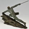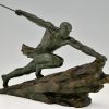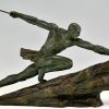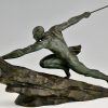 Art Deco Bronzen Sculptuur Atleet met Speer