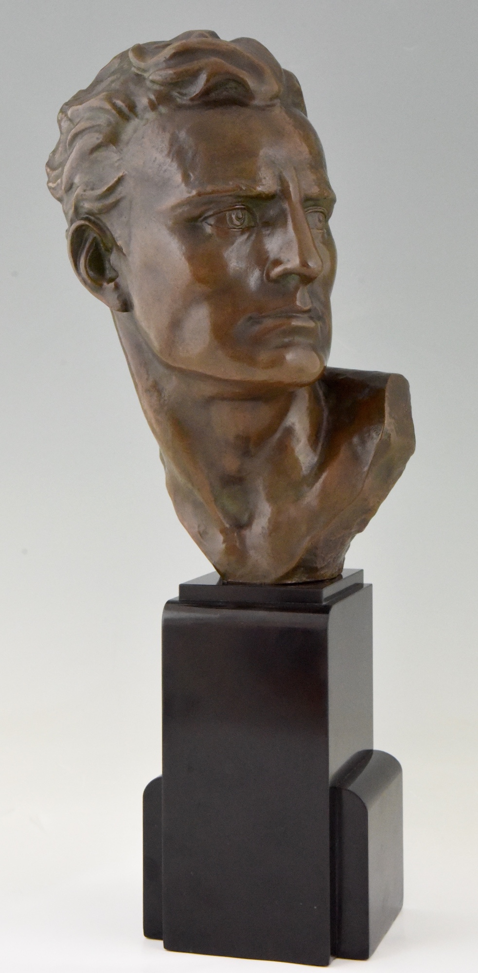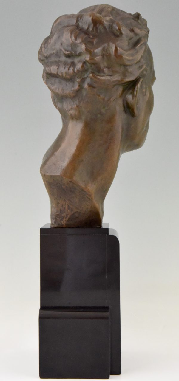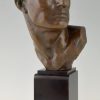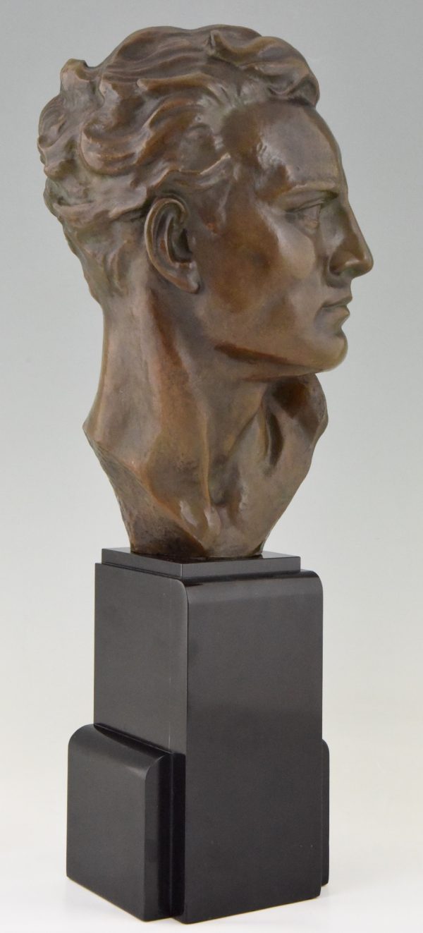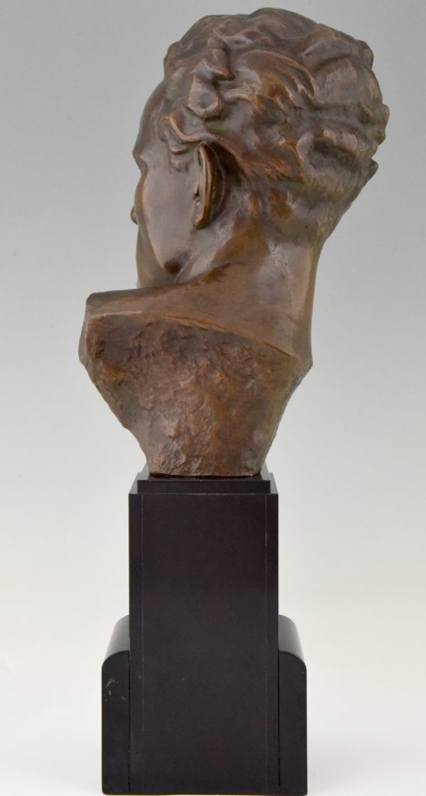 Art Deco bronze sculpture of a young man by Ugo Cipriani (Italy, 1897-1960) mounted on a Modernist Belgian Black marble base.