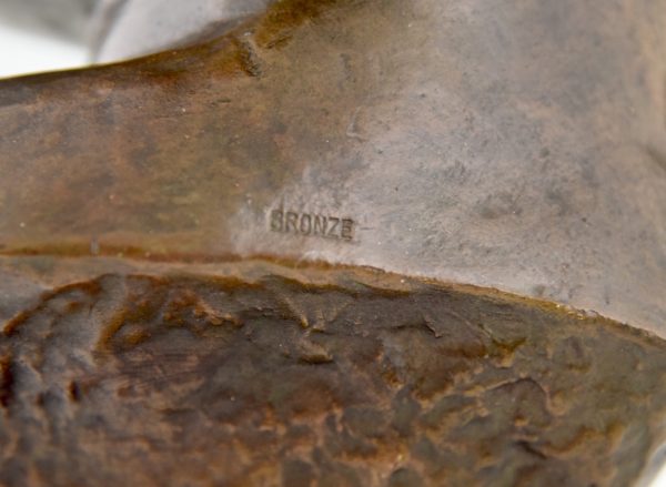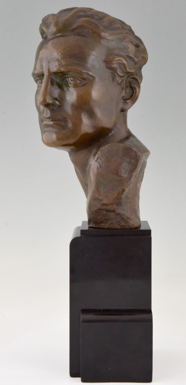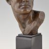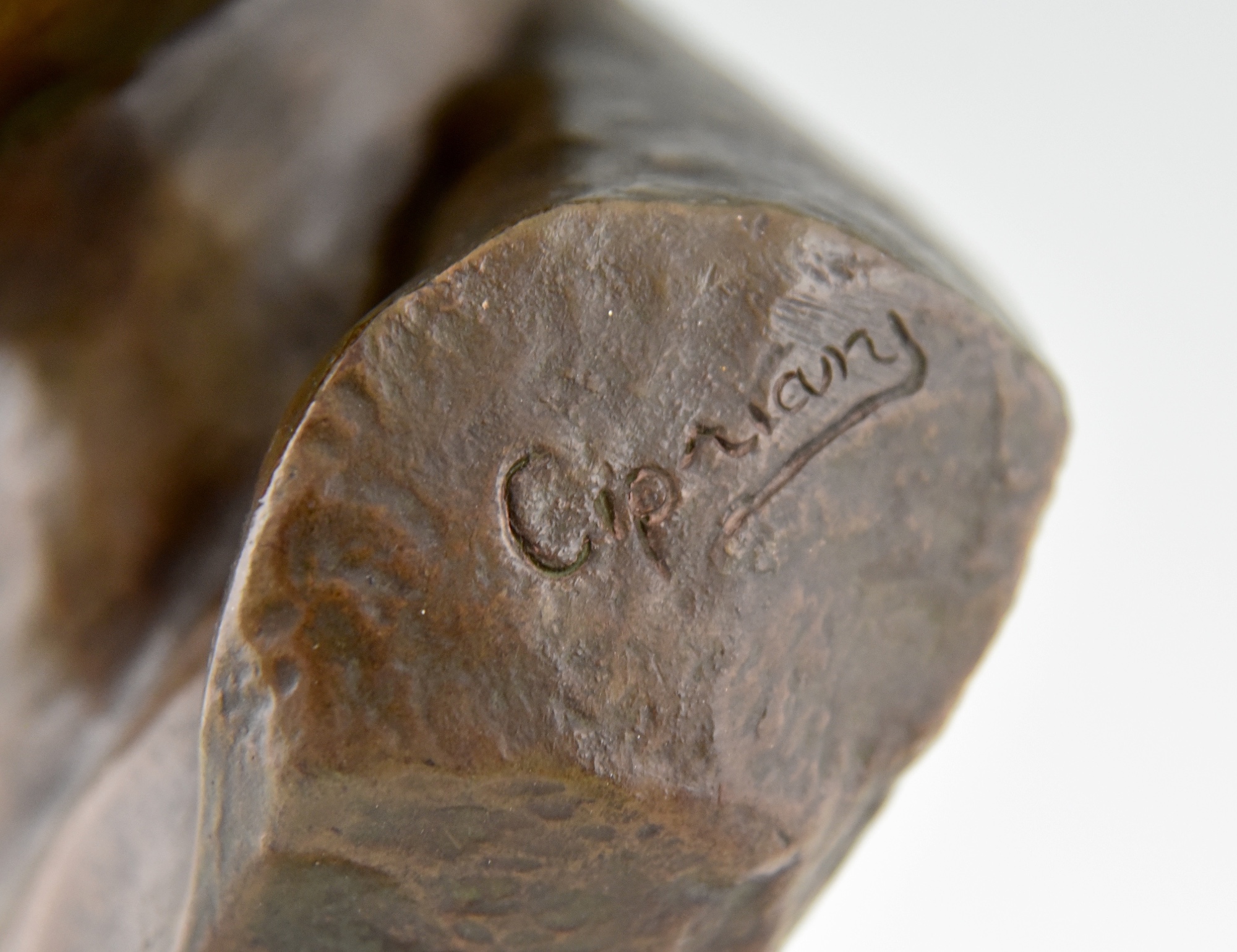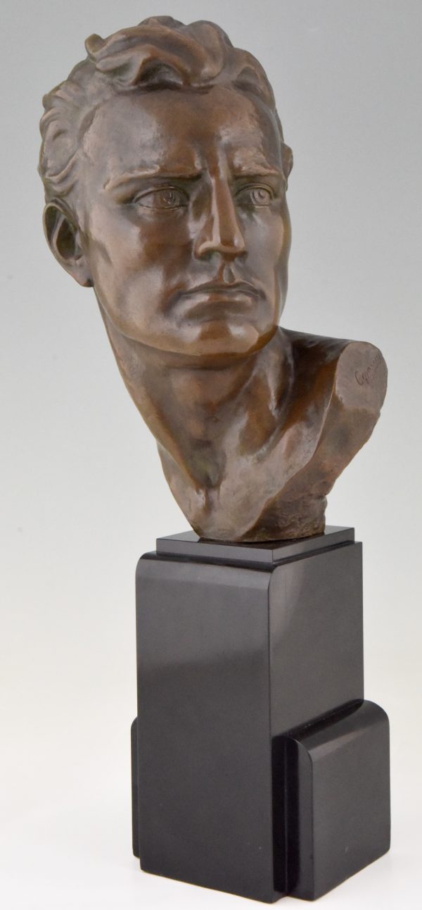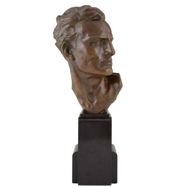 Art Deco bronze sculpture of a young man by Ugo Cipriani (Italy, 1897-1960) mounted on a Modernist Belgian Black marble base.