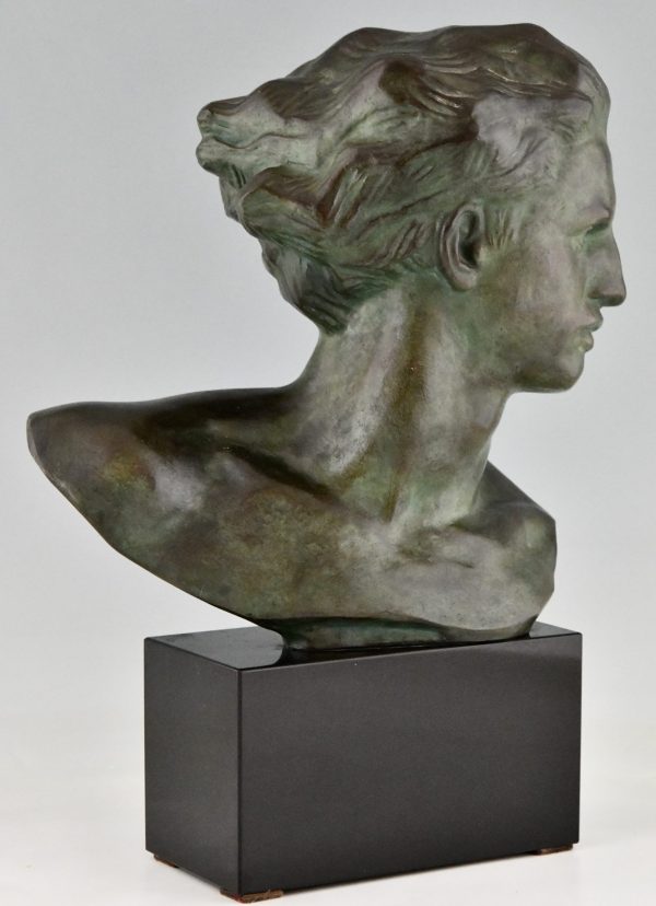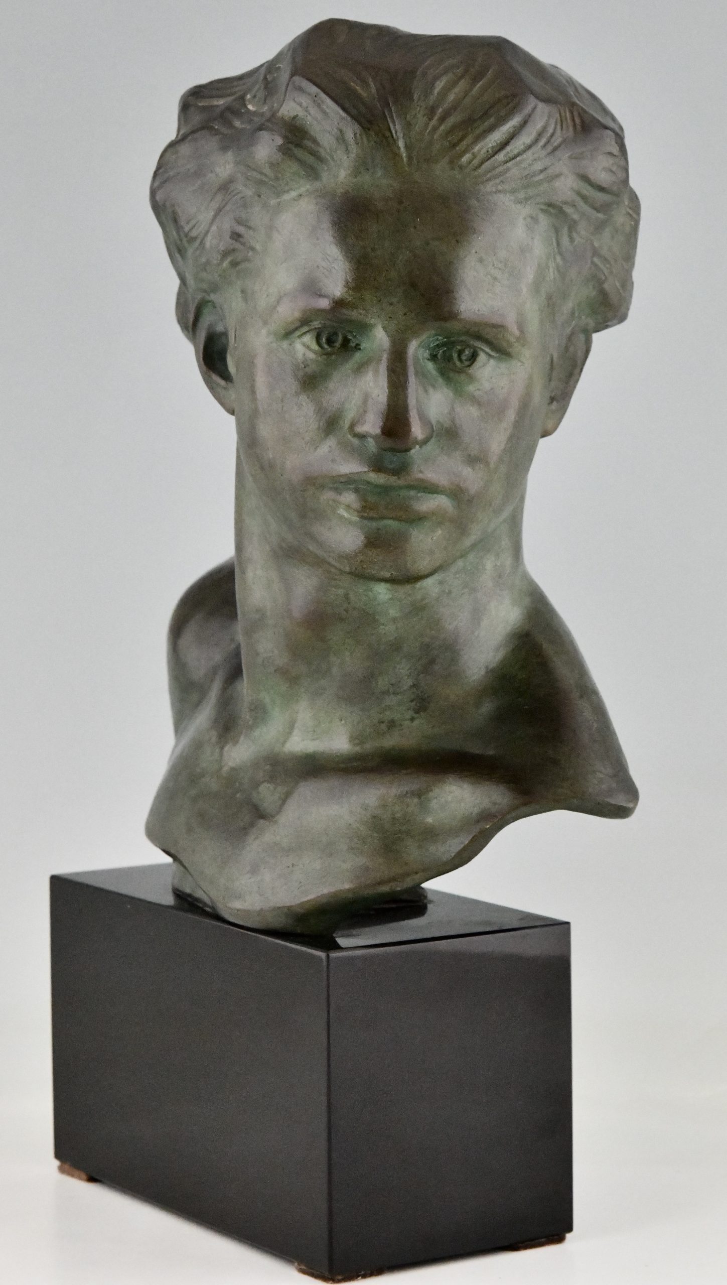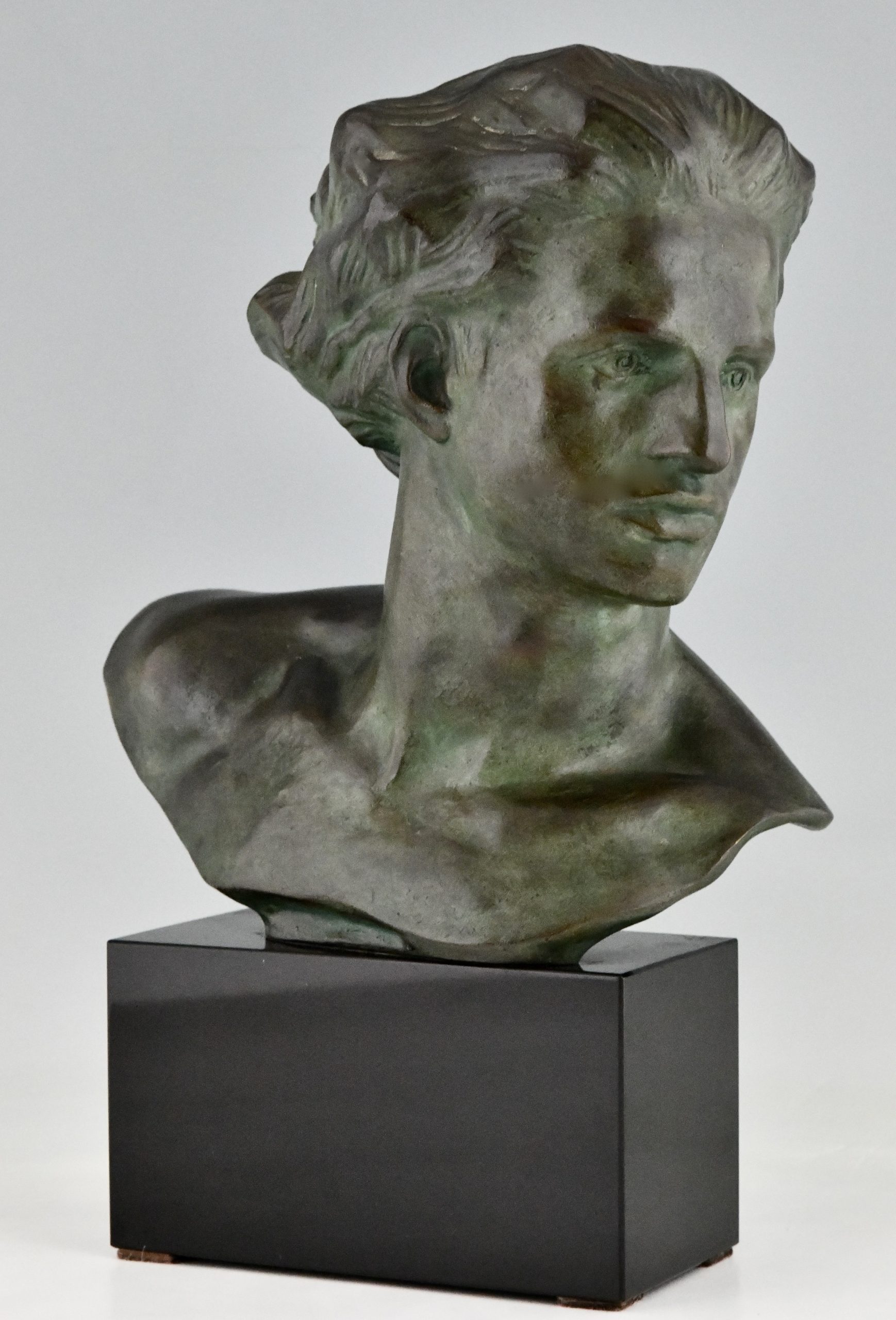 Art Deco bronzen sculptuur, buste van een jonge man van de kunstenaar Georges Gori.