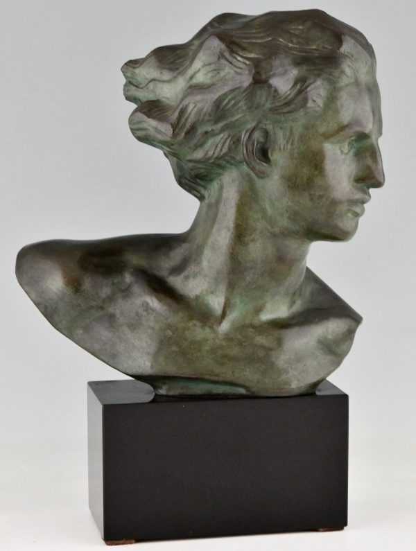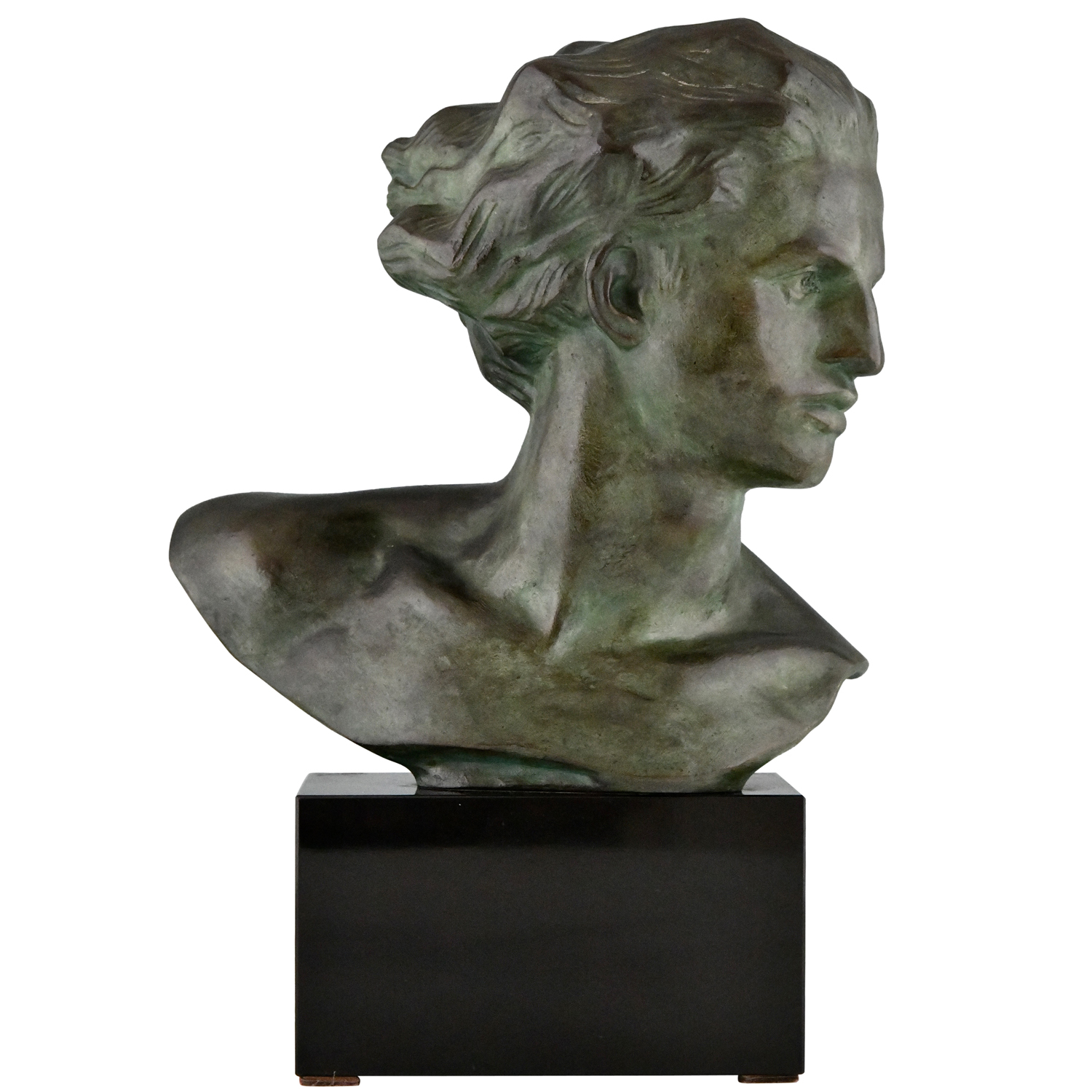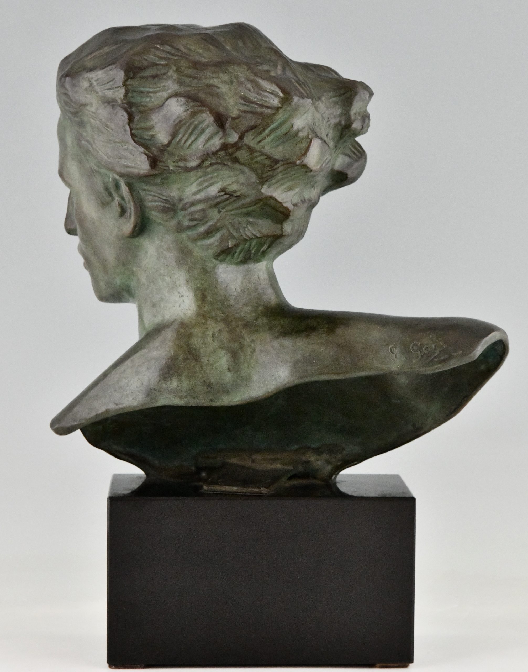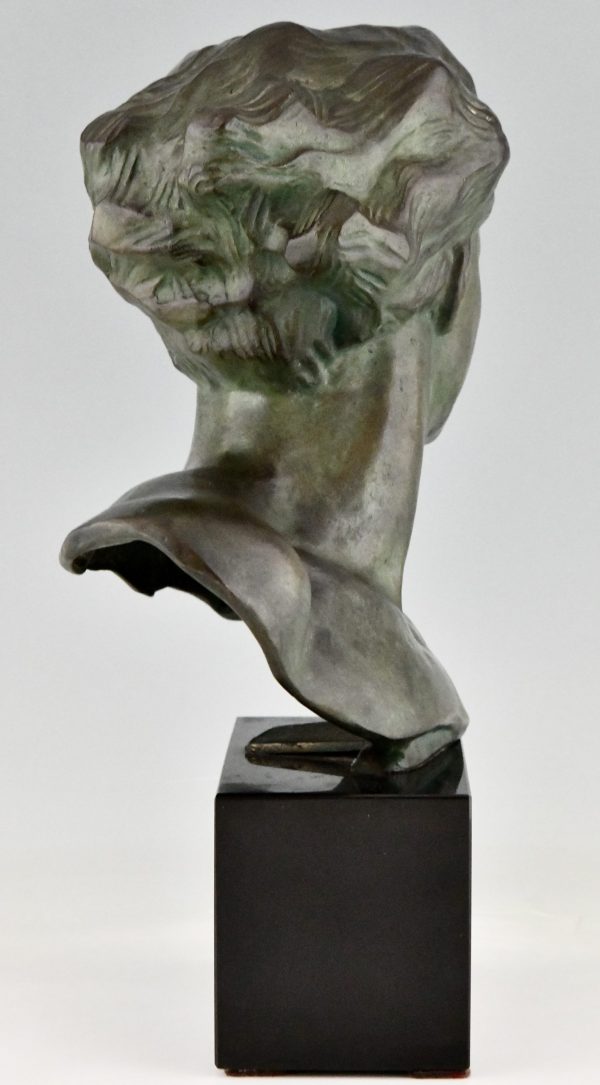 Art Deco bronzen sculptuur, buste van een jonge man van de kunstenaar Georges Gori.