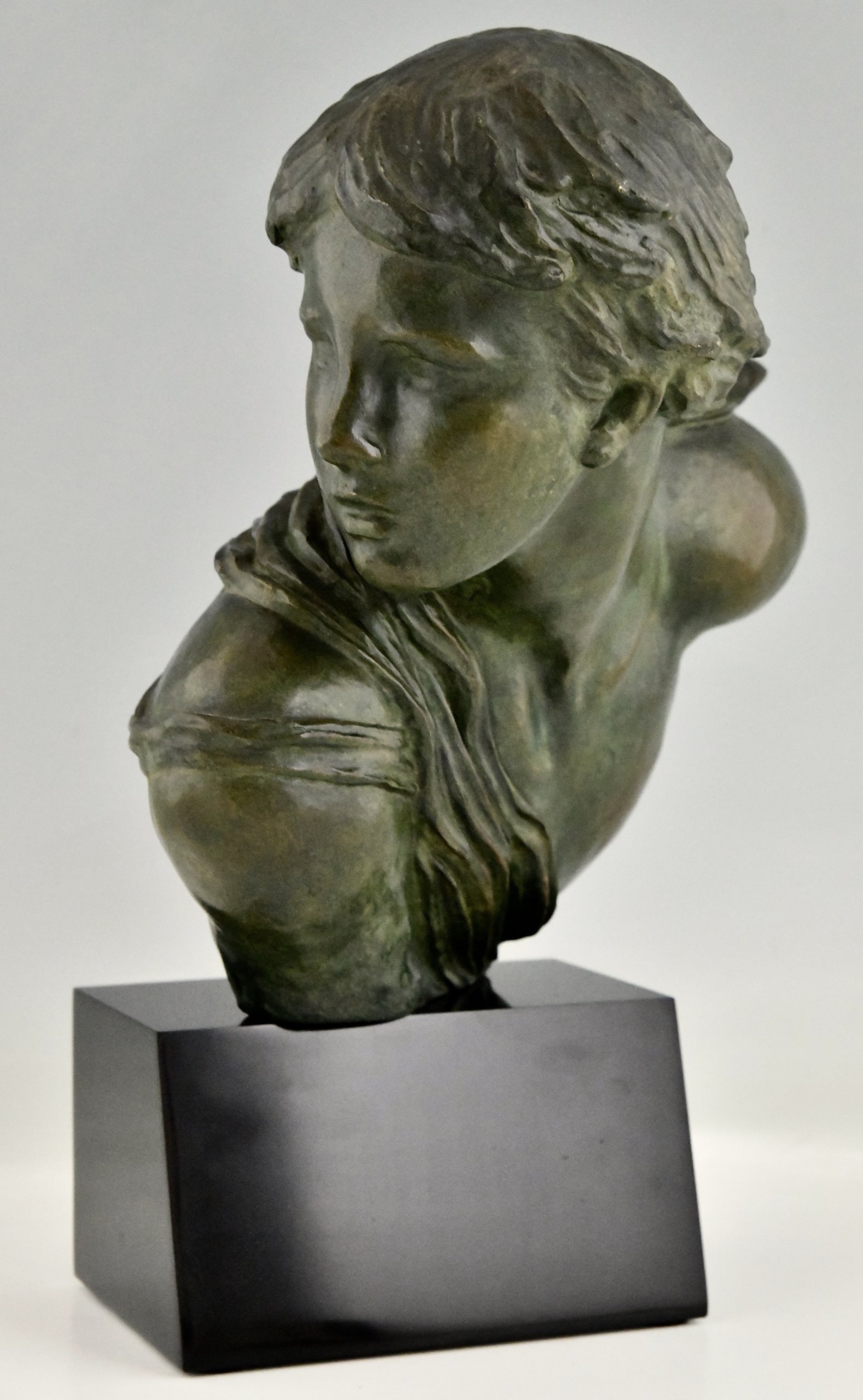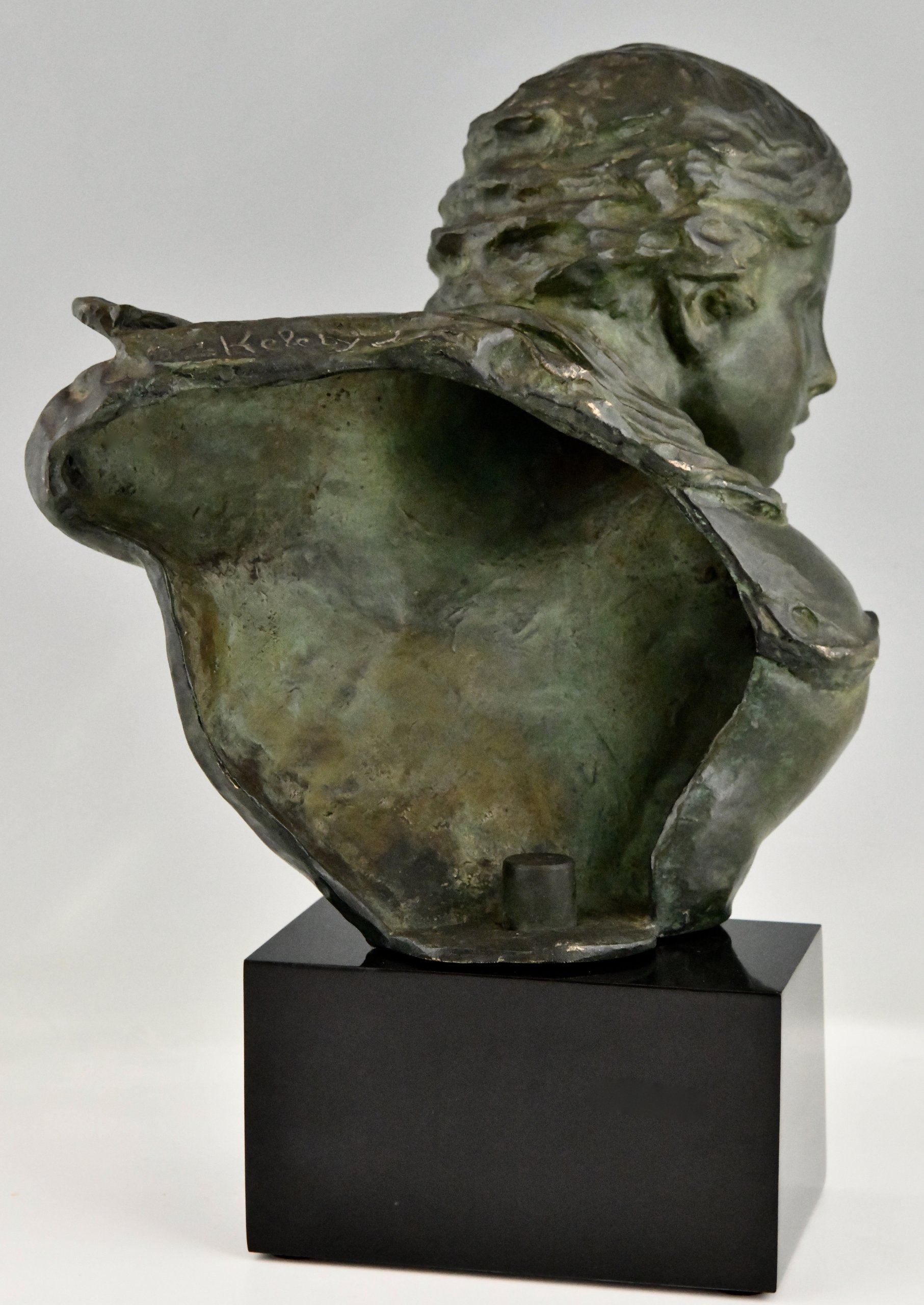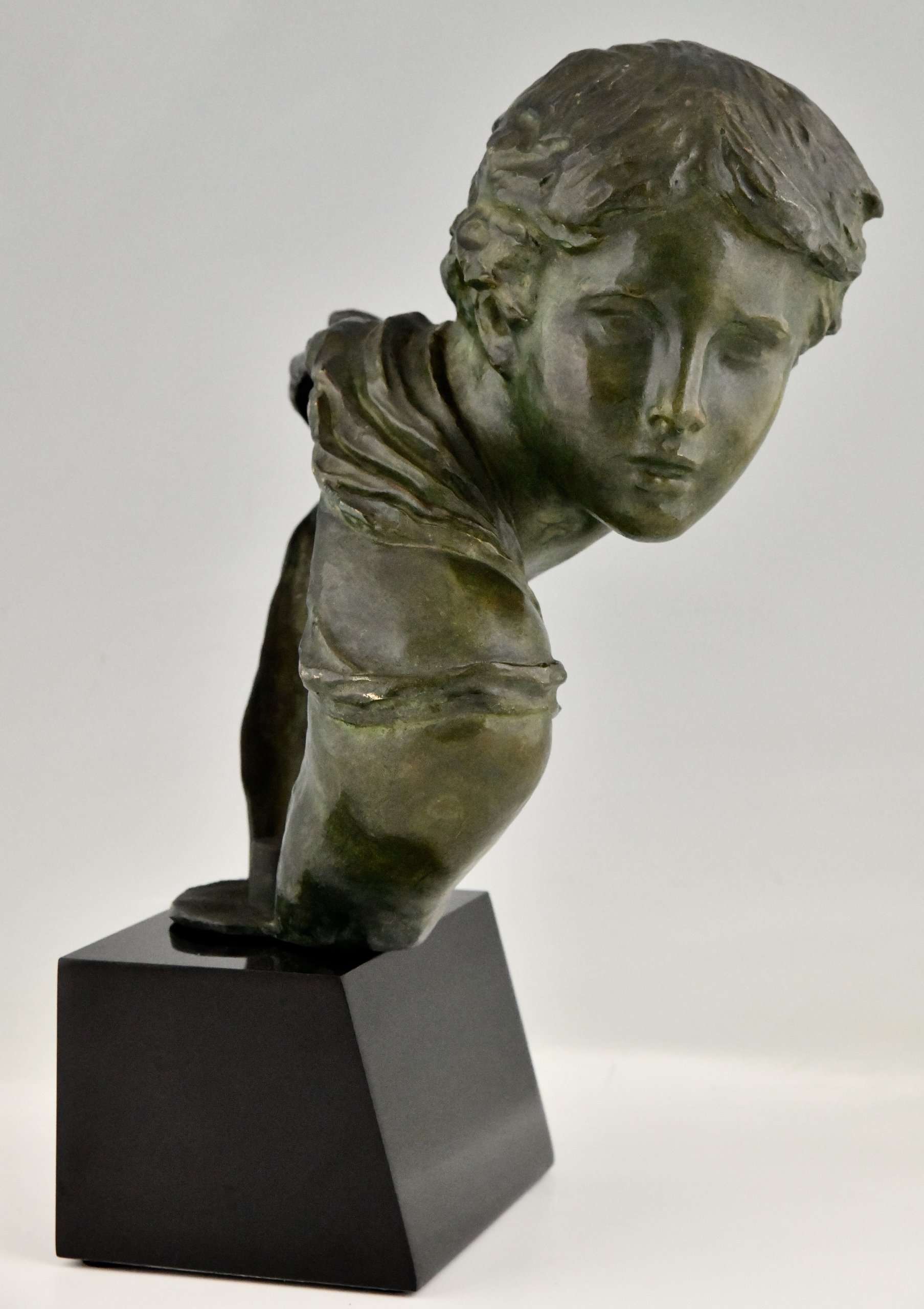 Art Deco bronzen sculptuur buste van een jongen door Alexandre Kelety.