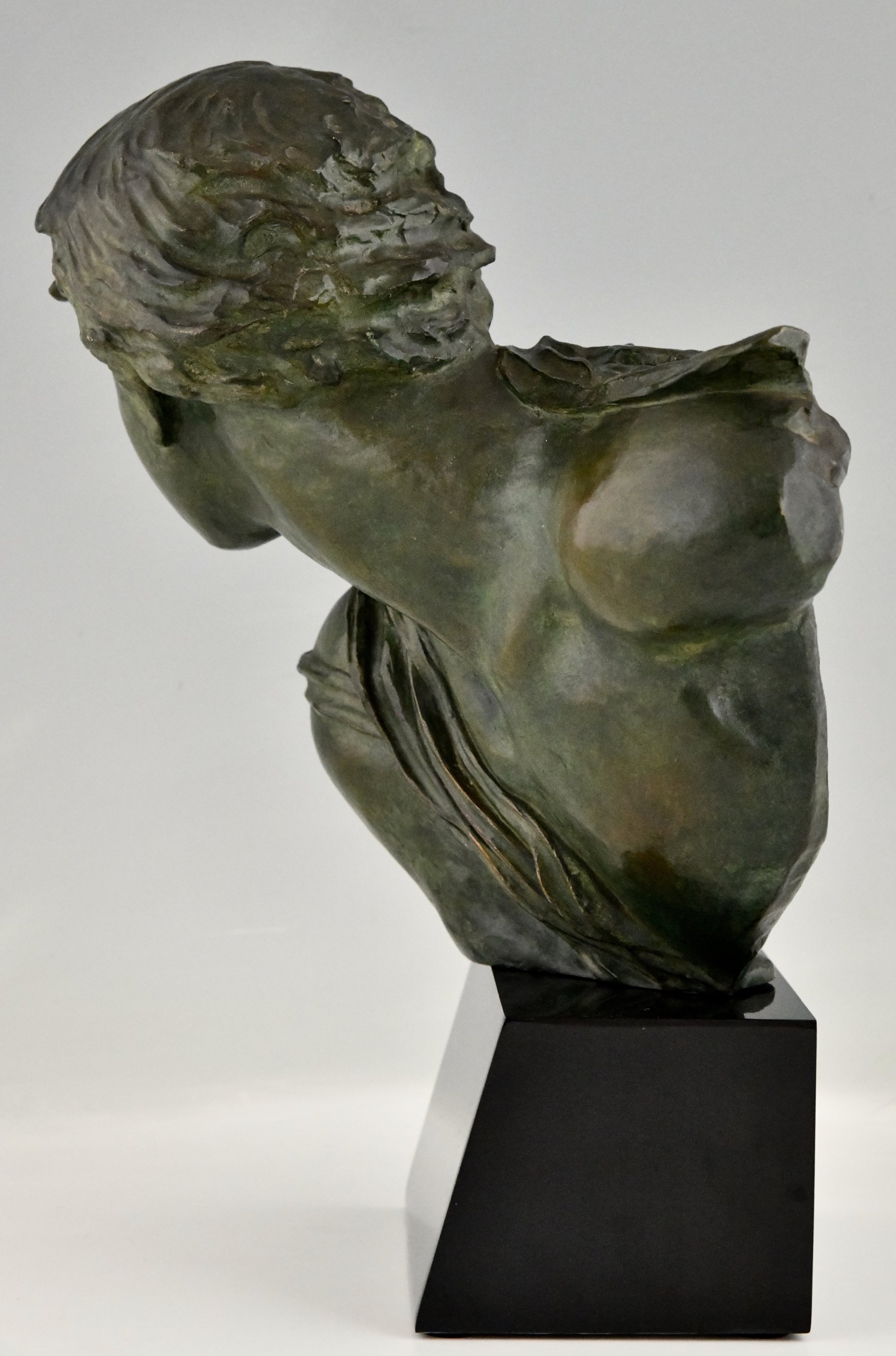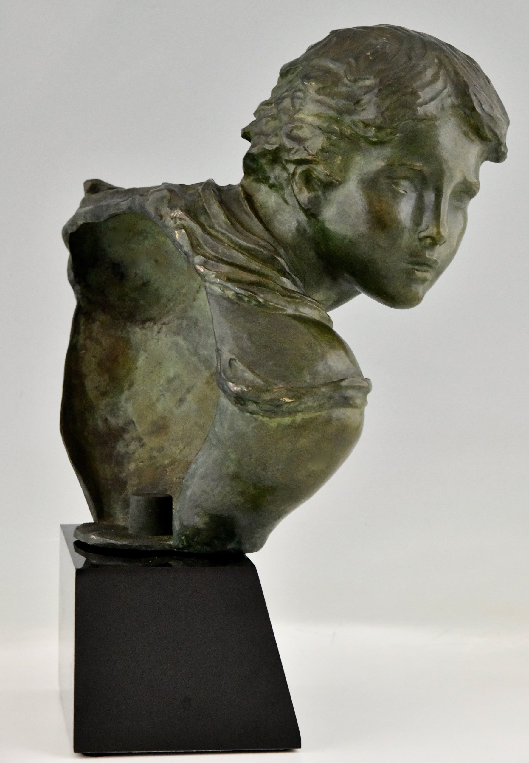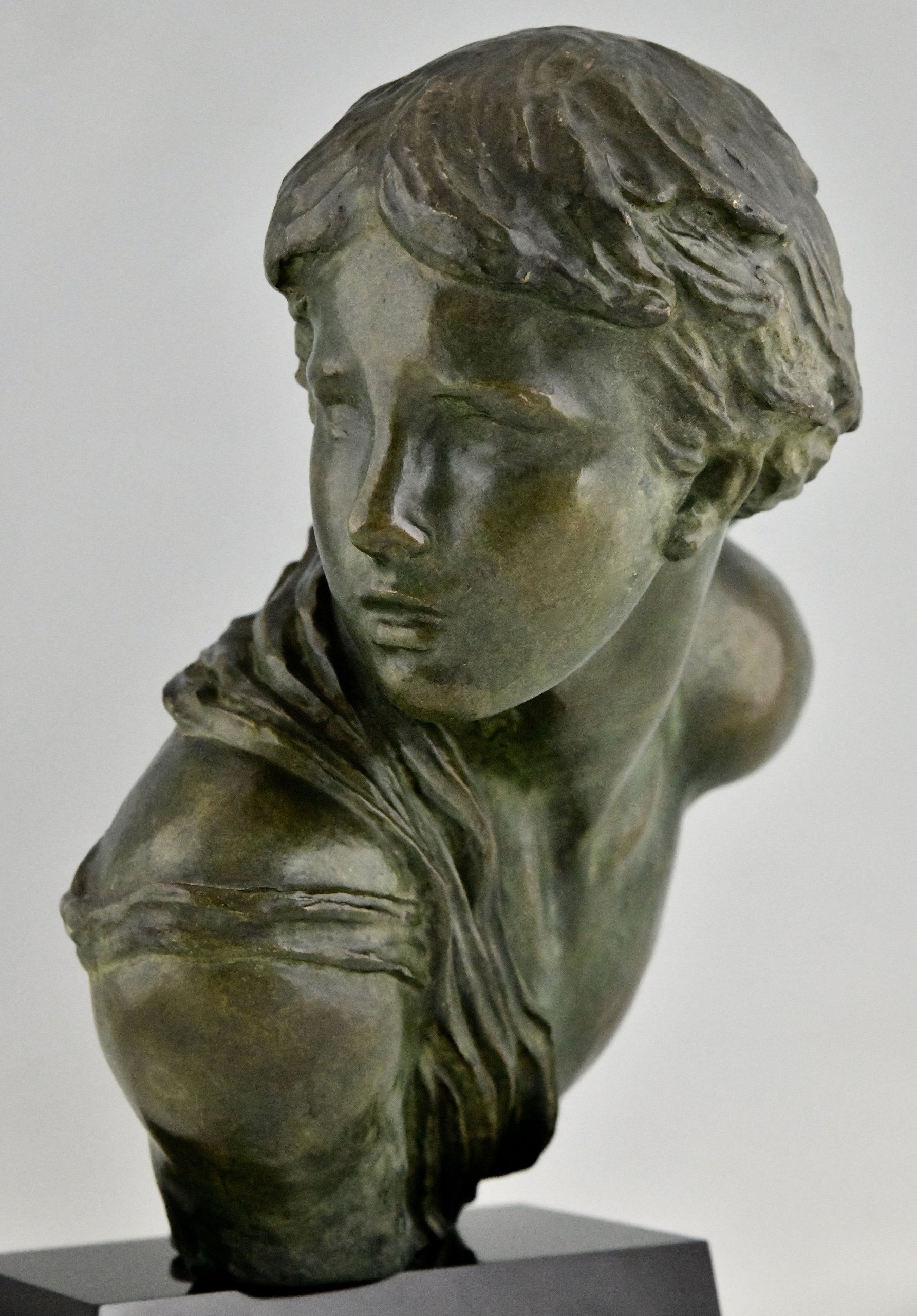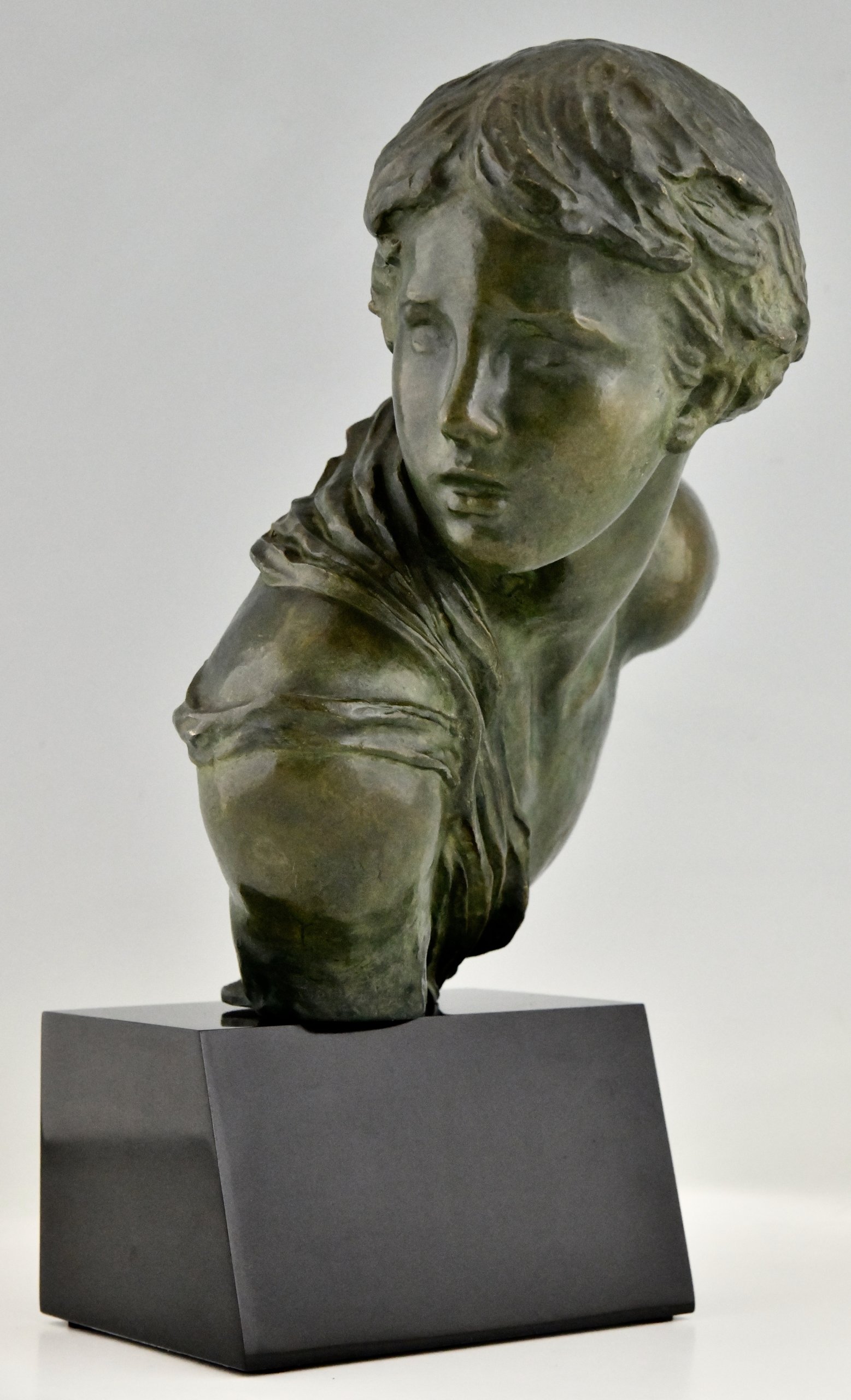 Art Deco bronzen sculptuur buste van een jongen door Alexandre Kelety.