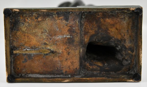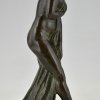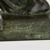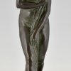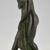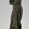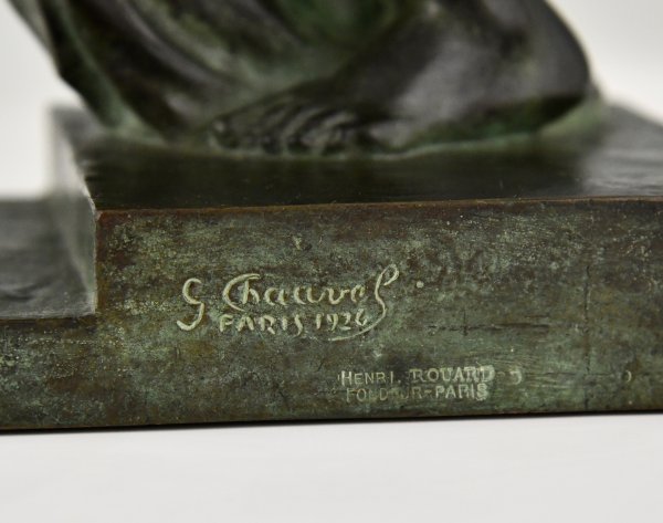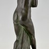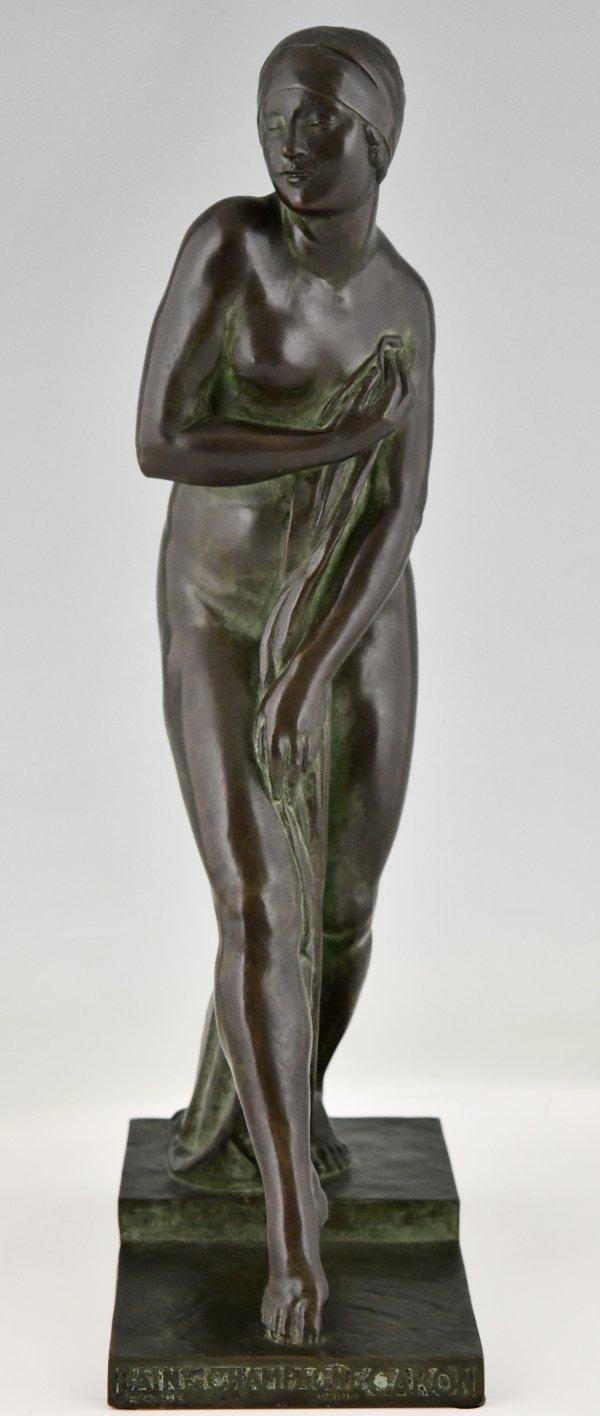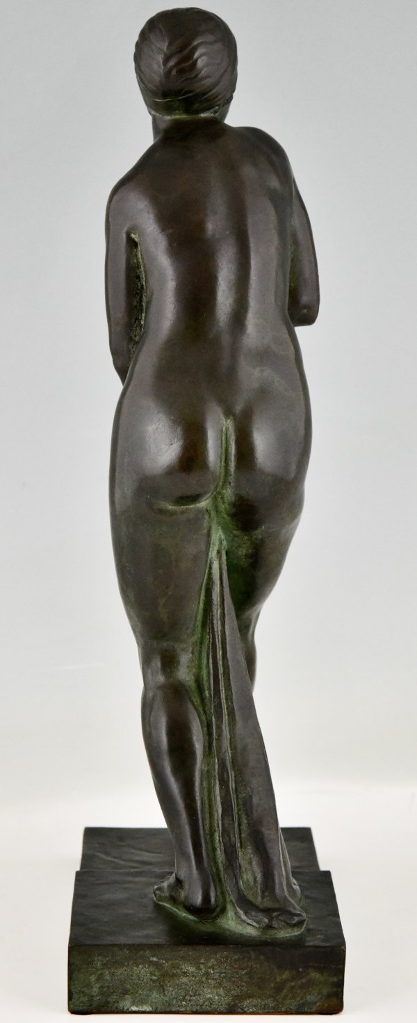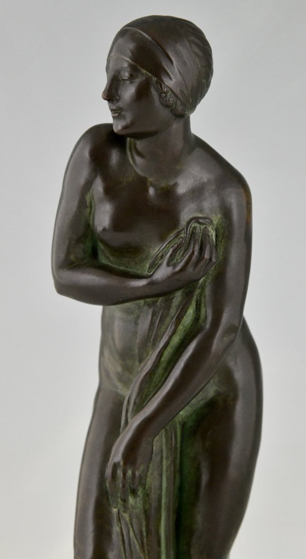 Art Deco bronzen sculptuur van een naakte baadster, Bain de Champagne Caron gesigneerd Georges Chauvel, 1926 met het gieterij stempel van Henri Rouard fondeur Paris.