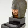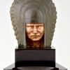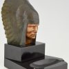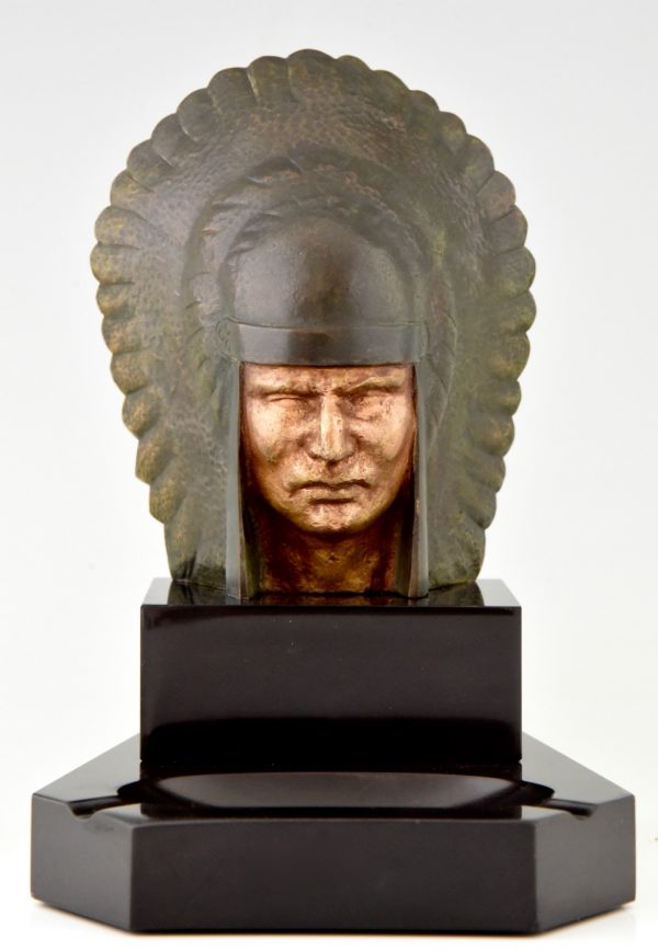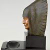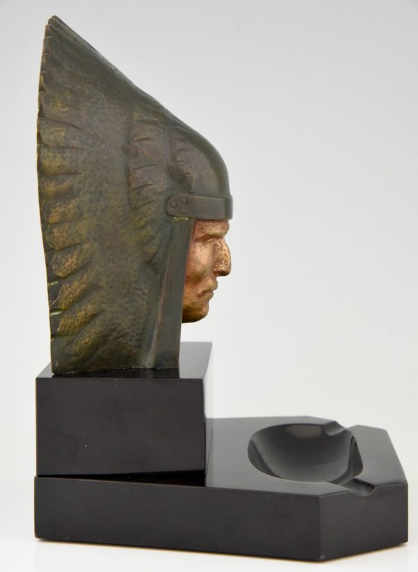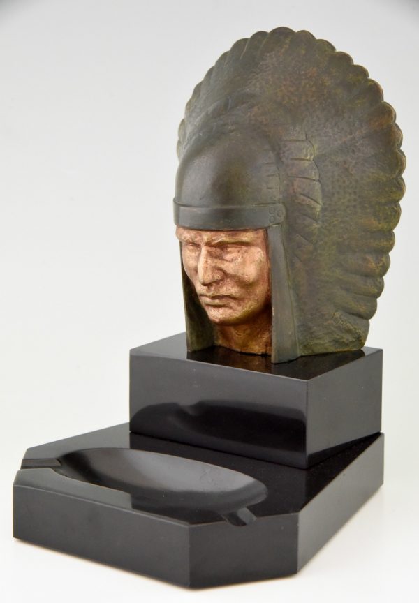 Stylish Art Deco bronze and marble ashtray with bust of an Indian by the french artist Georges Garreau.