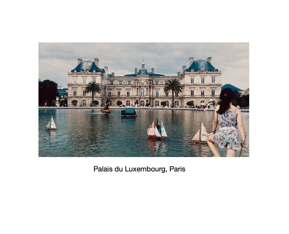 Art Deco schilderij 3 vrienden met boten bij het Palais du Luxembourg.