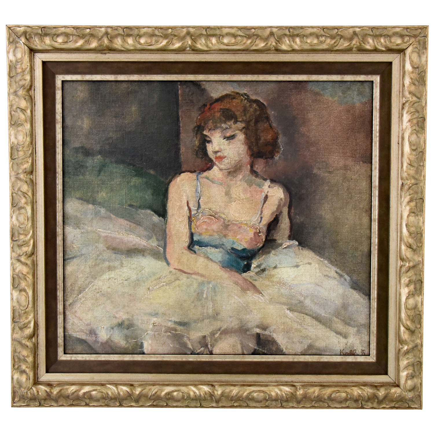 Beautiful Art Deco paiting of a young ballerina girl by the famous French artist Pierre Ernest Kohl who was born in 1897 in Monaco.